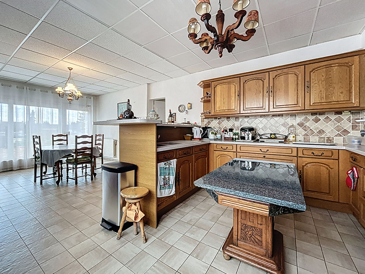 La maison principale est composée en rez de chaussée : d'un séjour, d'une grande cuisine dinatoire de deux chambres et deux salles d'eau.