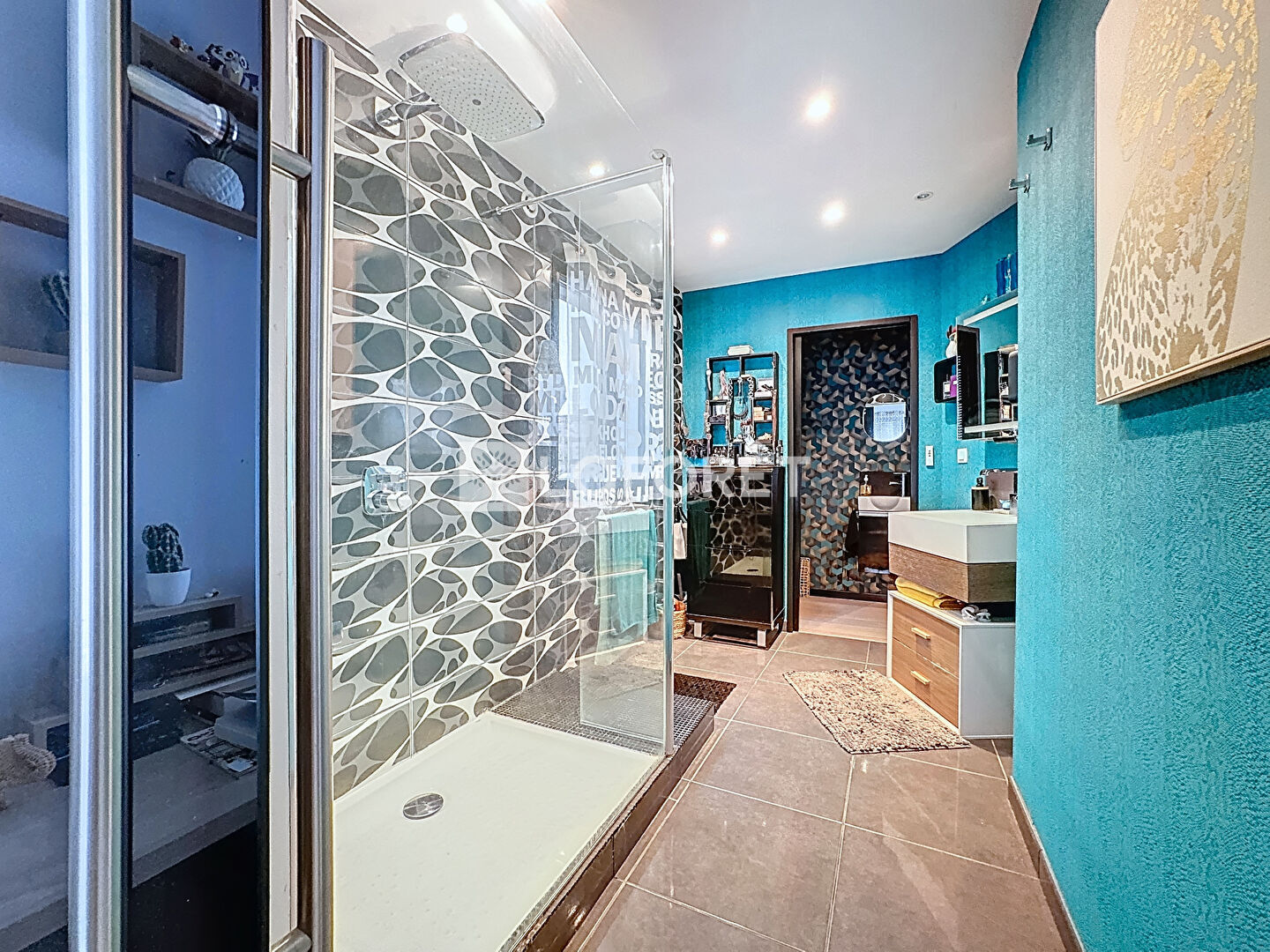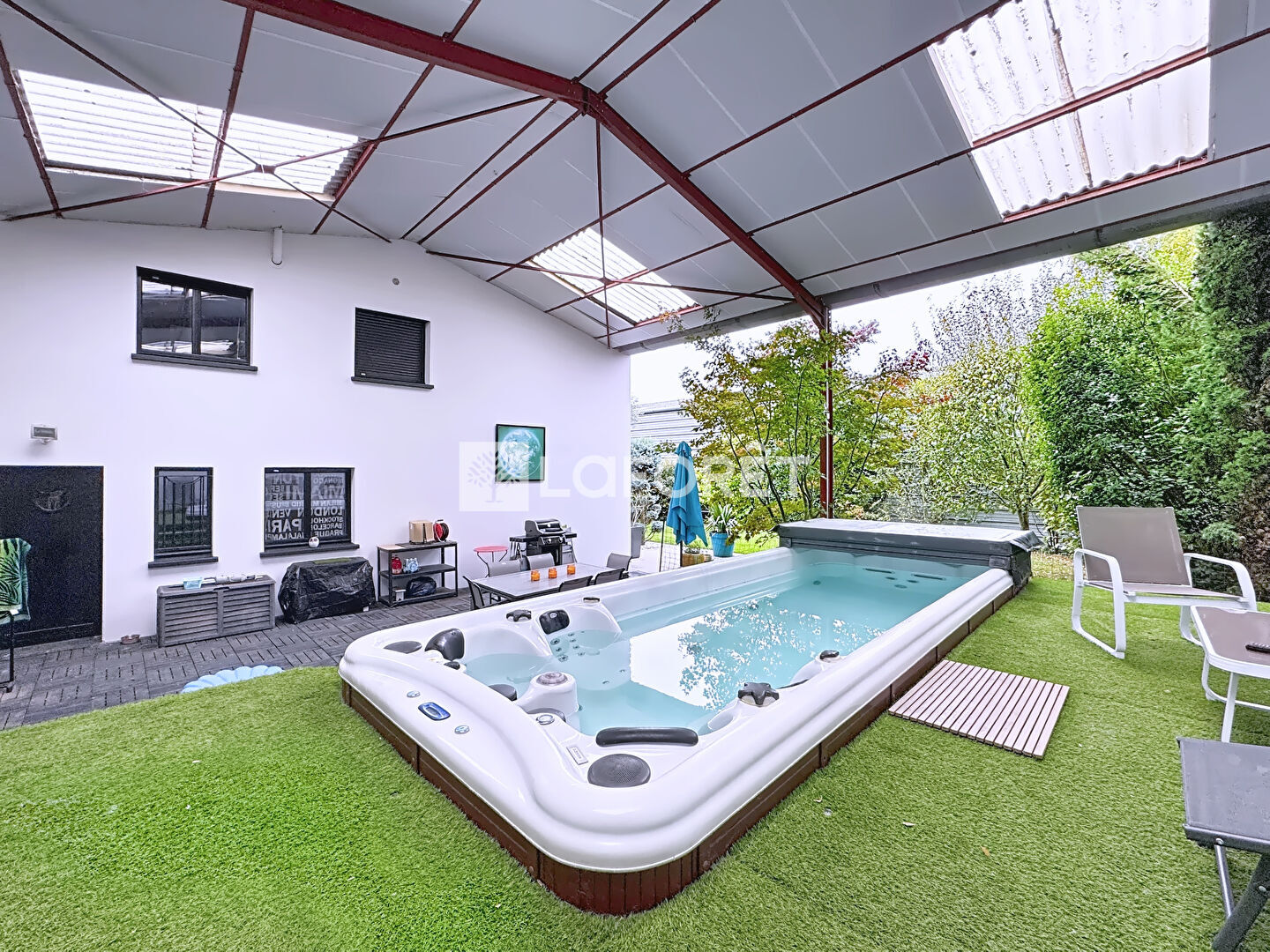 La visite ne s'arrête pas là puisque, dans le jardin arboré, vous pourrez bénéficier de deux belles terrasses dont une couverte avec spa de nage à contre courant.