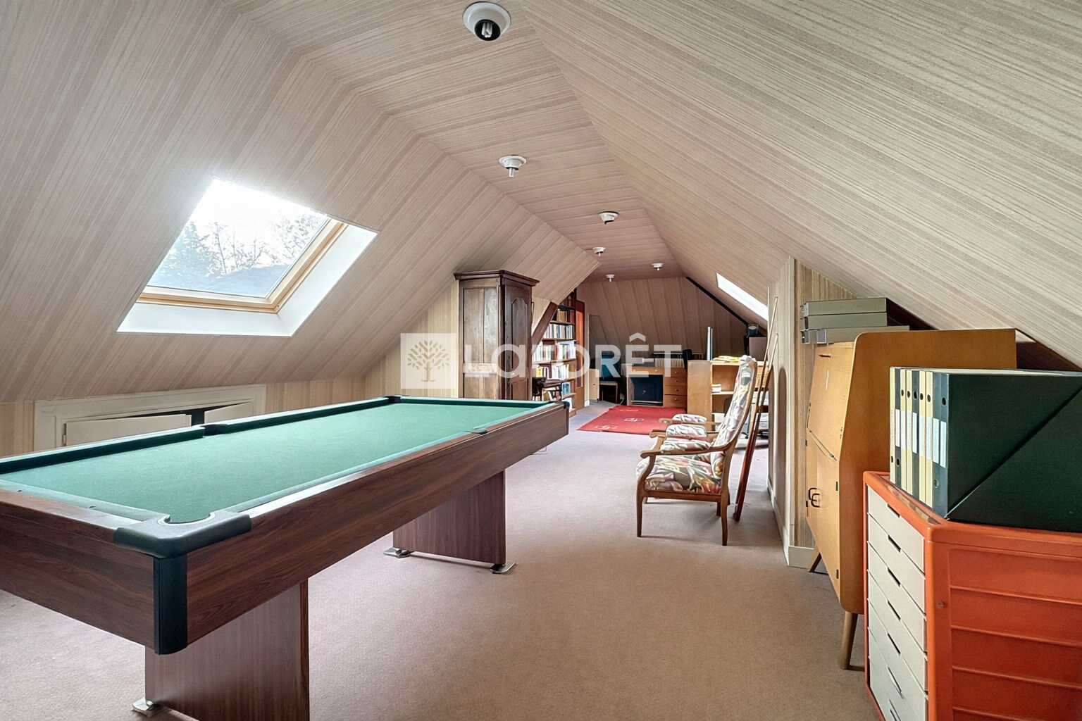 A l'étage, un palier donnant l'accès à deux chambres, un bureau, une salle de billard et une salle de bains avec wc.