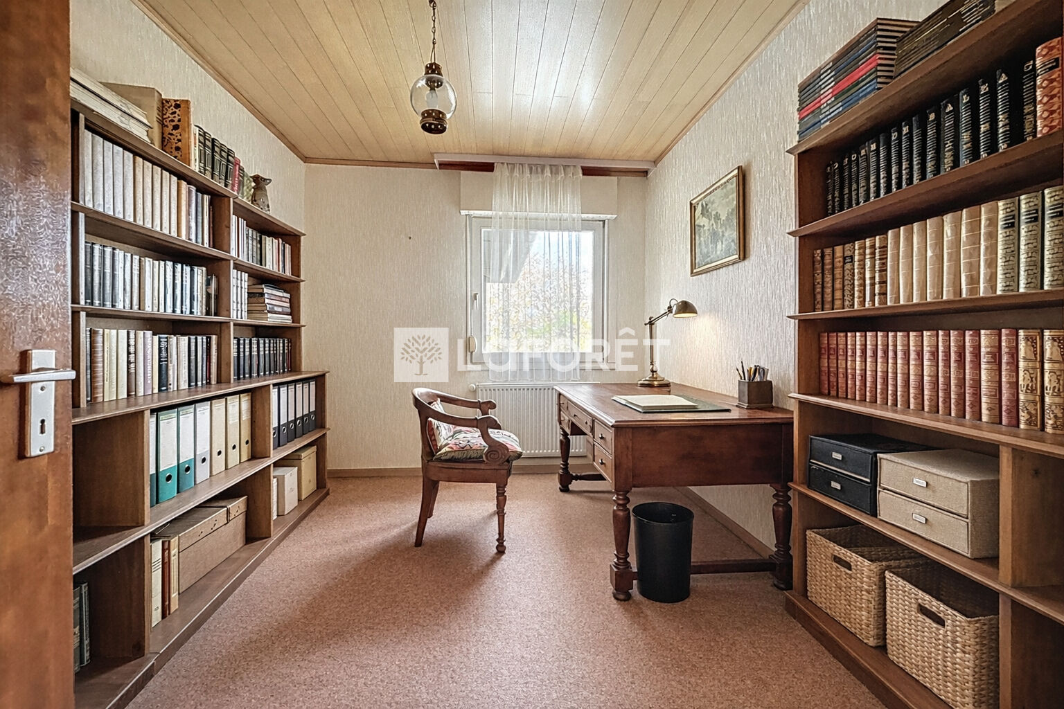 En rez de chaussée, le hall d'entrée dessert une cuisine équipée, une salle à manger donnant sur un grand salon baigné de lumière, les baies vitrées donnent une vue agréable sur un jardin sans vis à vis. Un couloir dessert cinq chambres de beaux volumes, une salle d'eau et un wc séparé.