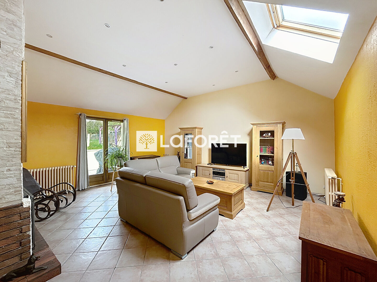 Dans l'agrandissement, une chambre une salle de douche, uet un grand séjour cathédrale avec cheminée insert. Vie de plain pied possible.