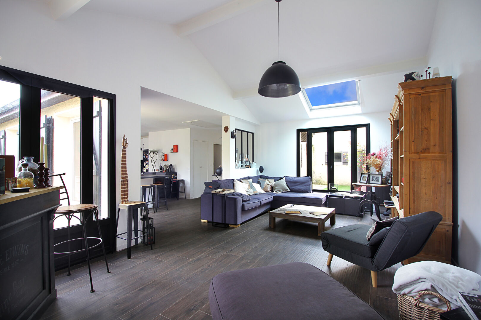 Cette maison familiale de 113 m2 complétée par un logement indépendant de 55 m2 relié par un porche, offre une distribution idéale et de beaux espaces de vie aux prestations soignées.