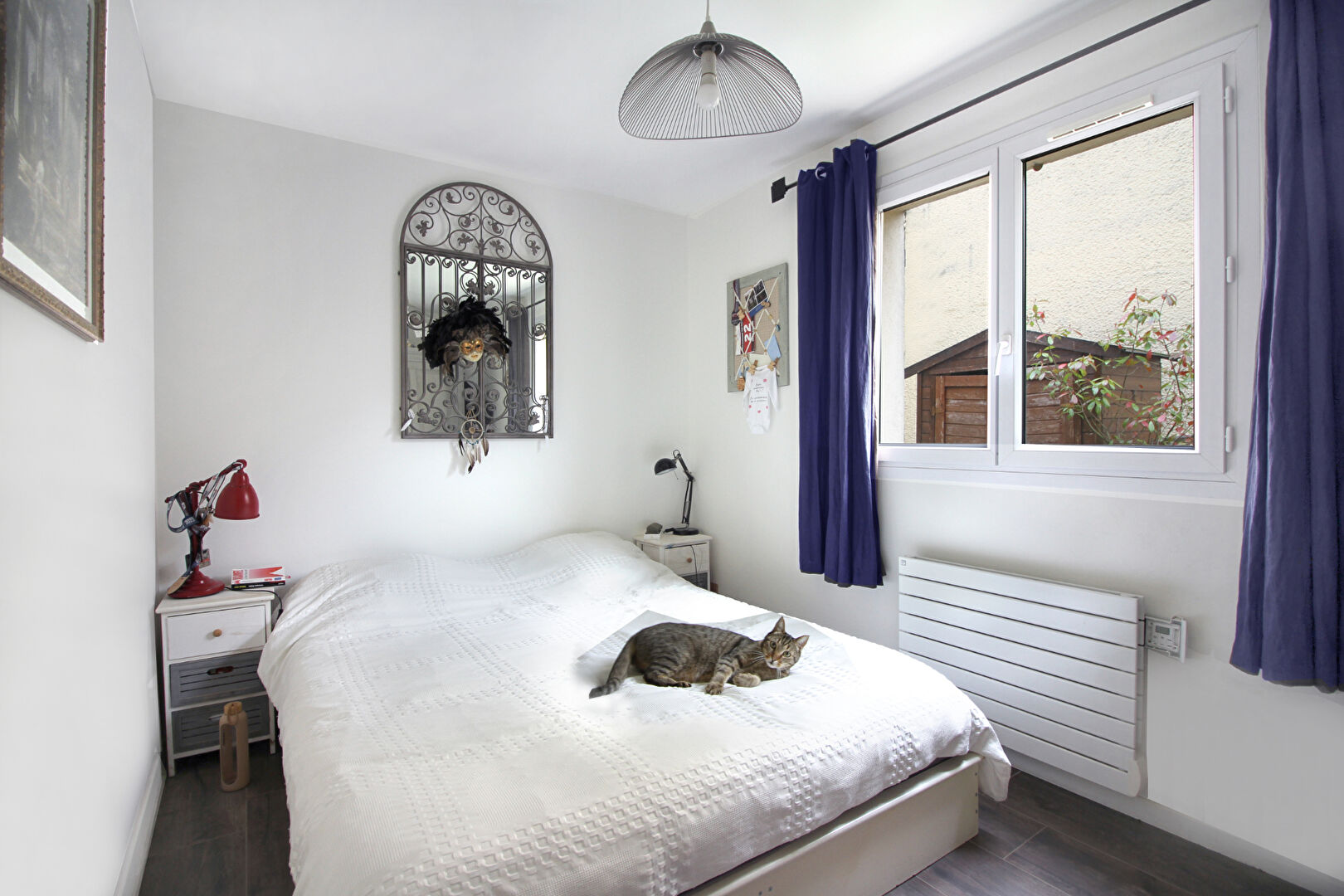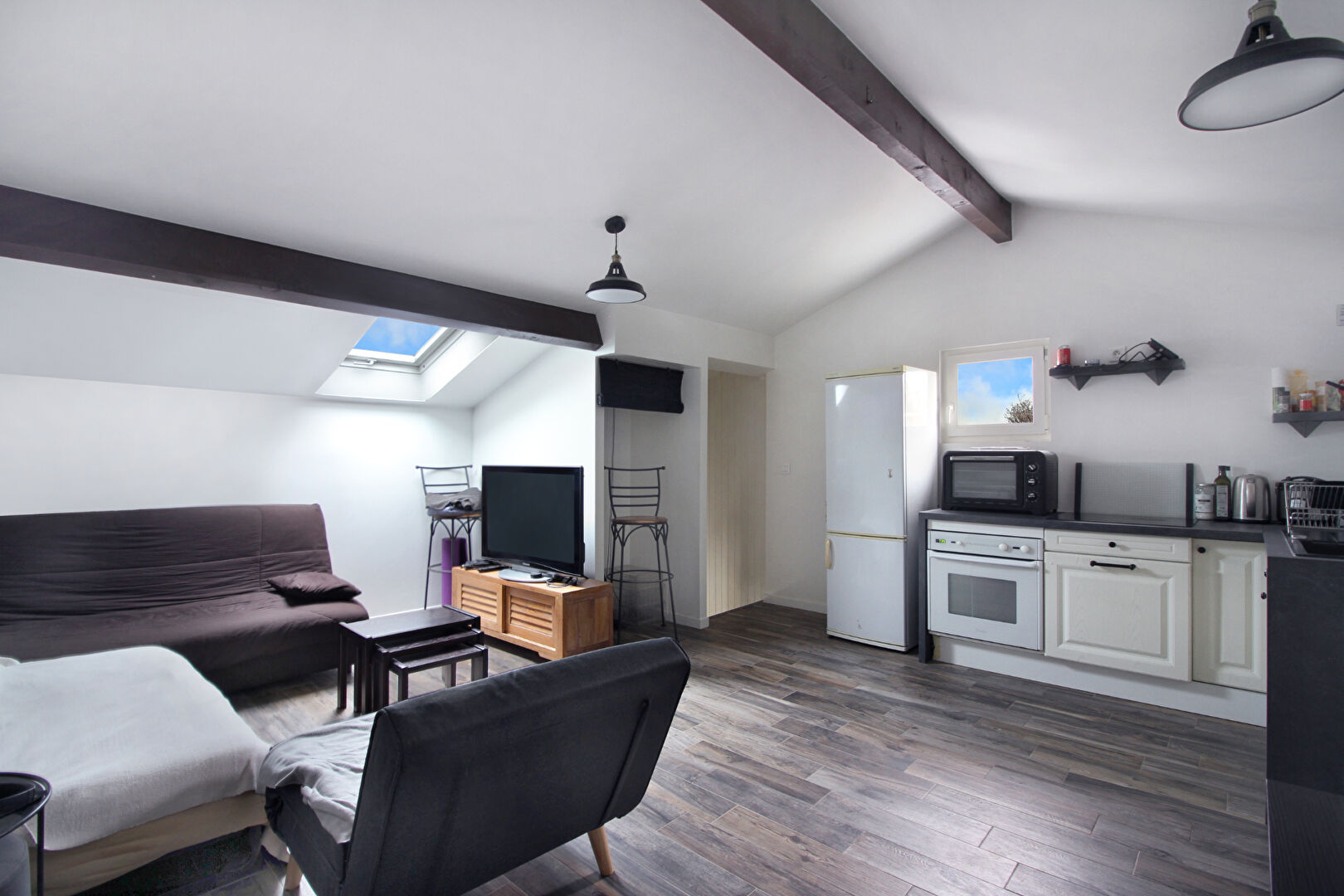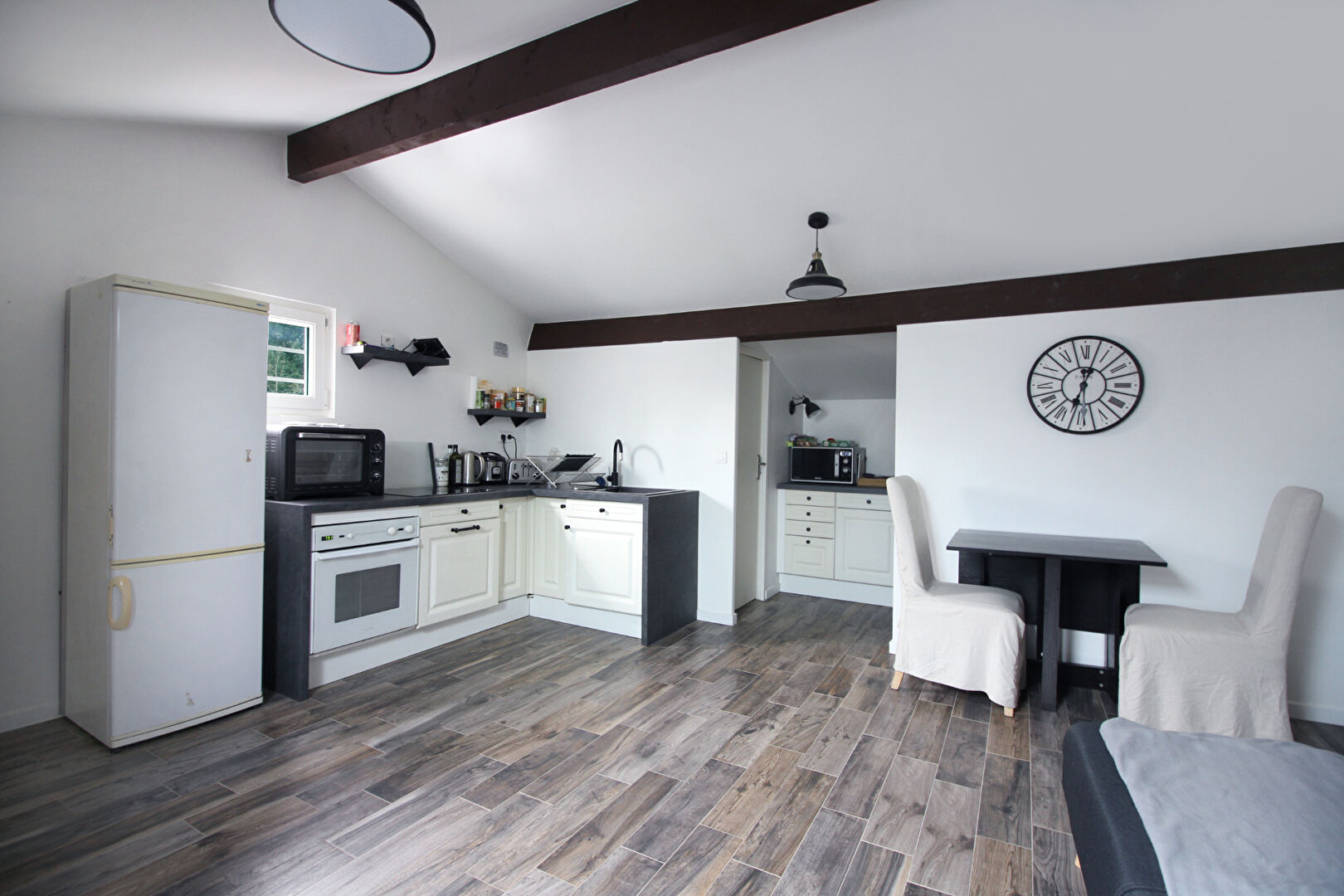 Le logement indépendant, accessible depuis le patio et bénéficiant également d'une entrée privative sur rue, se compose au rez-de-chaussée d'un local/entrée, d'une chambre et d'une salle d'eau avec WC. À l'étage, une vaste pièce de vie avec cuisine ouverte, arrière-cuisine et un deuxième WC complètent l'ensemble.