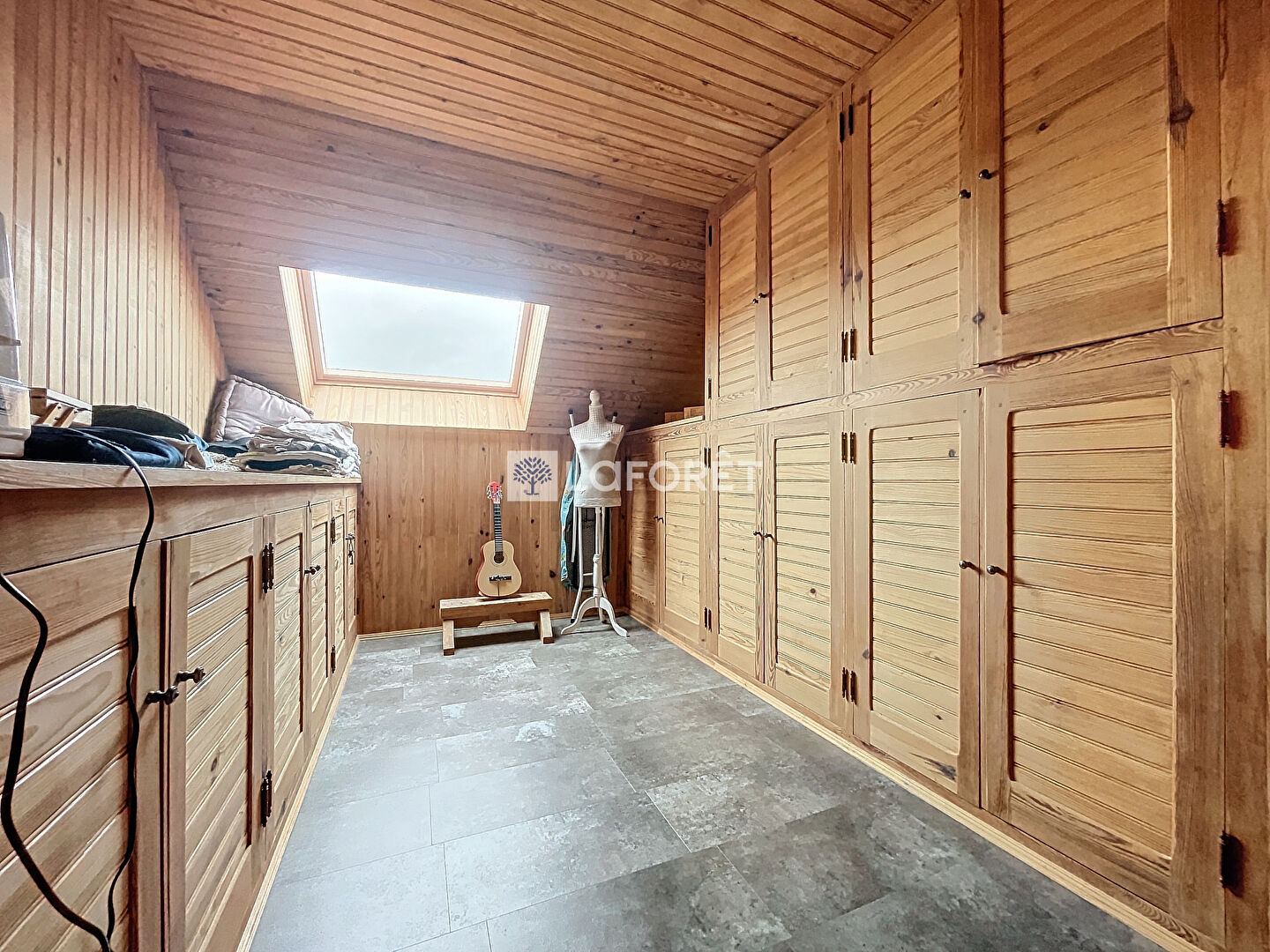 Du palier du 1er étage vous accéderez à 4 chambres dont 2 ayant un point d'eau, une salle de bains, un grand dressing aménagé et une pièce supplémentaire à finir d'aménager pouvant faire office de salle de jeux ou salle de sport.