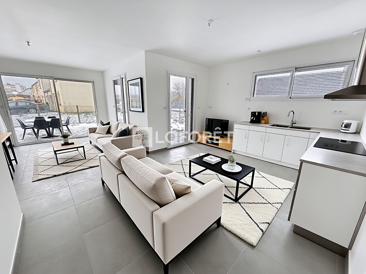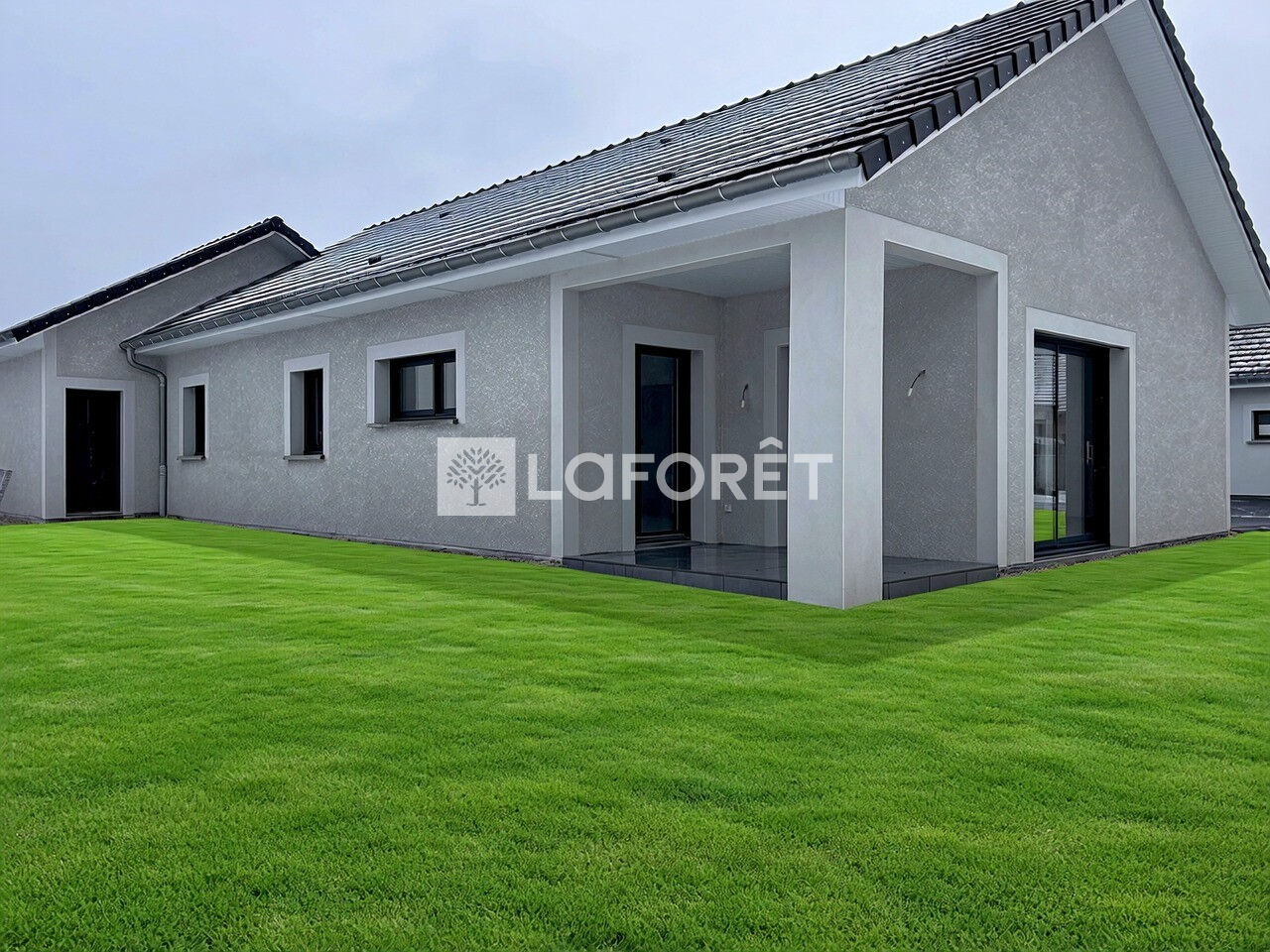 Construite sur un terrain plat et clos, avec cour et accès goudronnés, les aménagements paysagers seront réalisés par le constructeur (certaines photos présentent une projection pelouse).