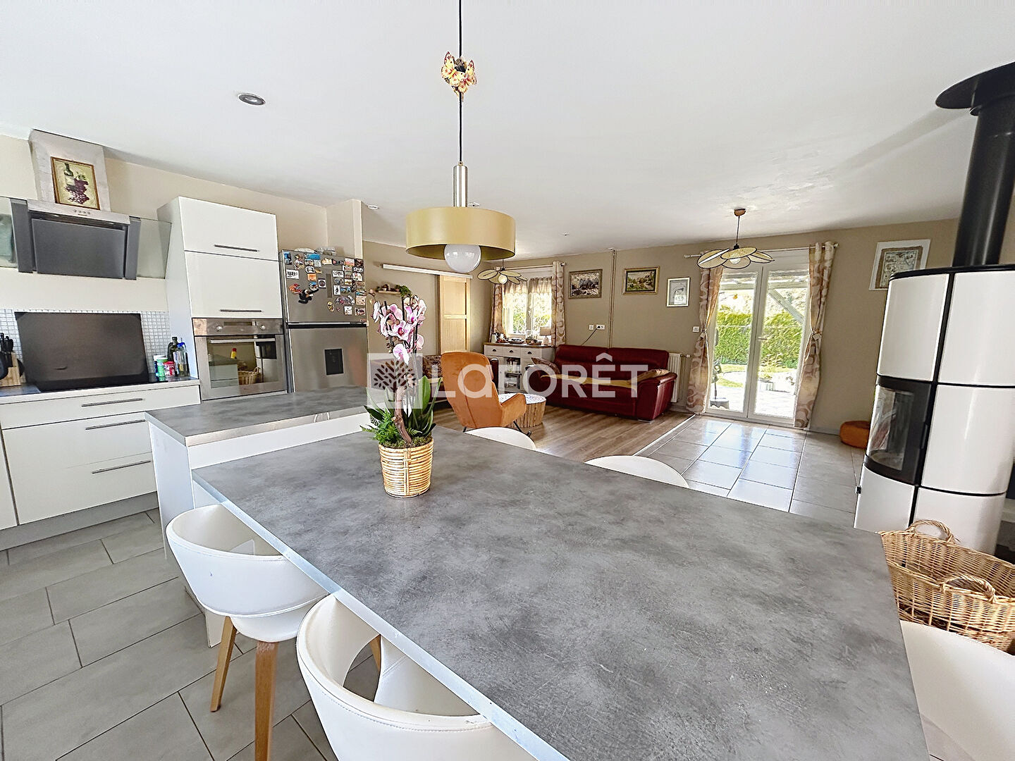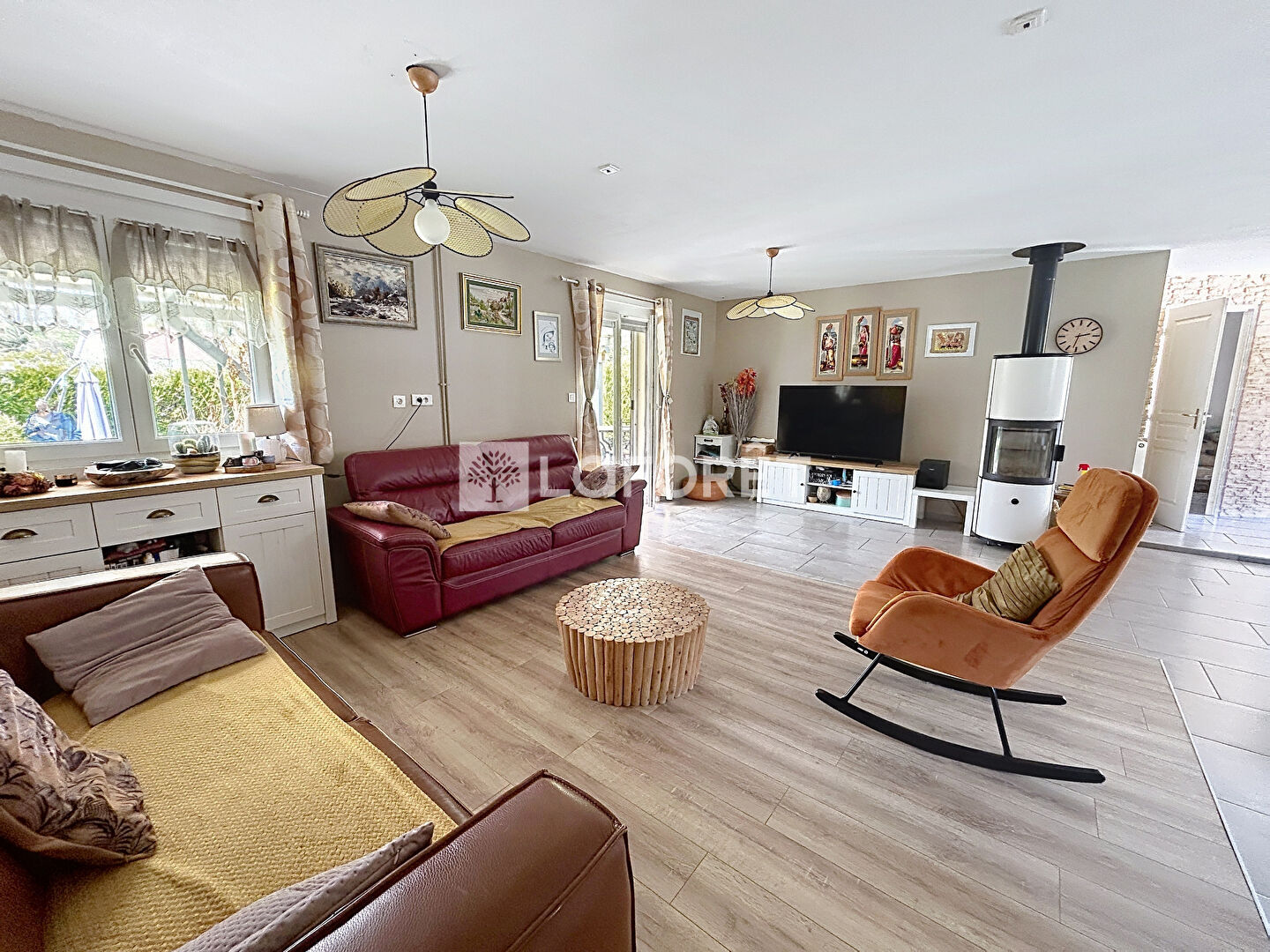 Maison de plain-pied située au calme, comprenant : une entrée desservant un salon -séjour lumineux, une cuisine entièrement équipée, 4 chambres, une salle d'eau, un WC indépendant, un cellier et un garage.
