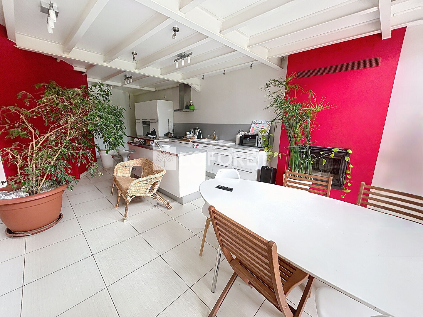 Au calme, proche de toutes commodités maison de village rénovée en type loft structure métallique.