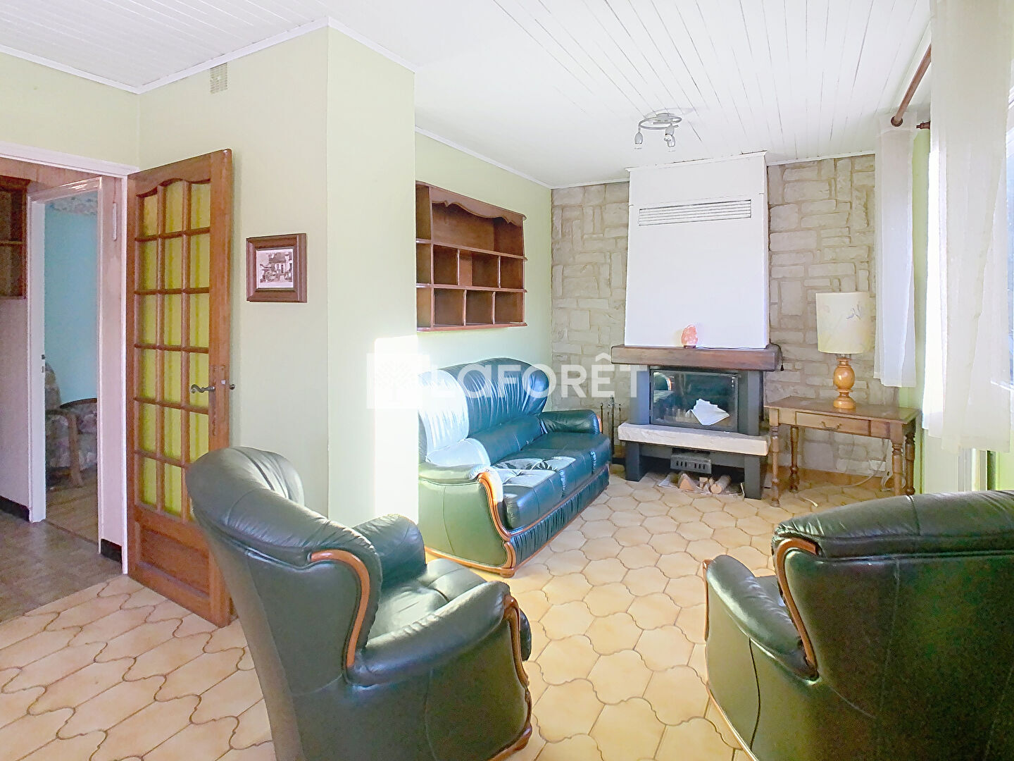 AU REZ DE CHAUSSEE SURELEVE : Dégagement, salon séjour équipé d'un insert bois, une terrasse ensoleillée avec accès au jardin, cuisine, 3 chambres, salle d'eau et wc.