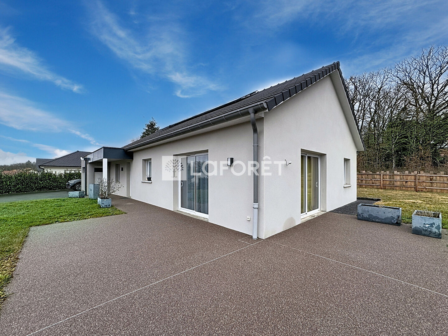 COLOMBE LES VESOUL. 5 KM DE VESOUL CENTRE. Très belle maison récente (2021) de plain pied de 5 pièces composée d'une piève à vivre avec cuisine équipée, trois chambres dont une suite parentale avec salle d'eau et dressing, salle d'eau, toilettes, buanderie et garage. Terrasse Hydrostar, cour en enrobé, portail électrique. terrain clos et arboré de 835 m². Très bonne performance énergétique: pompe à chaleur avec module pour plancher rafraichissant et panneaux solaires. Prestations soignées.