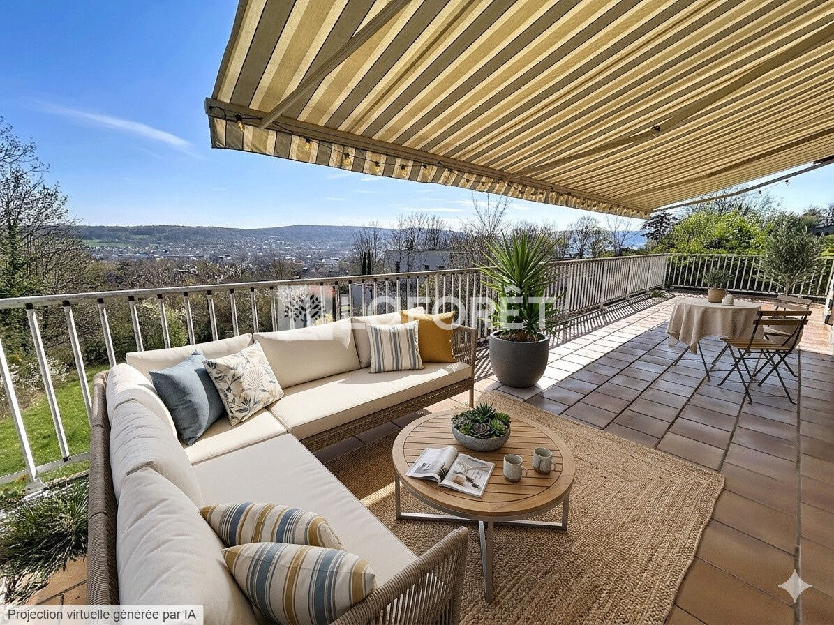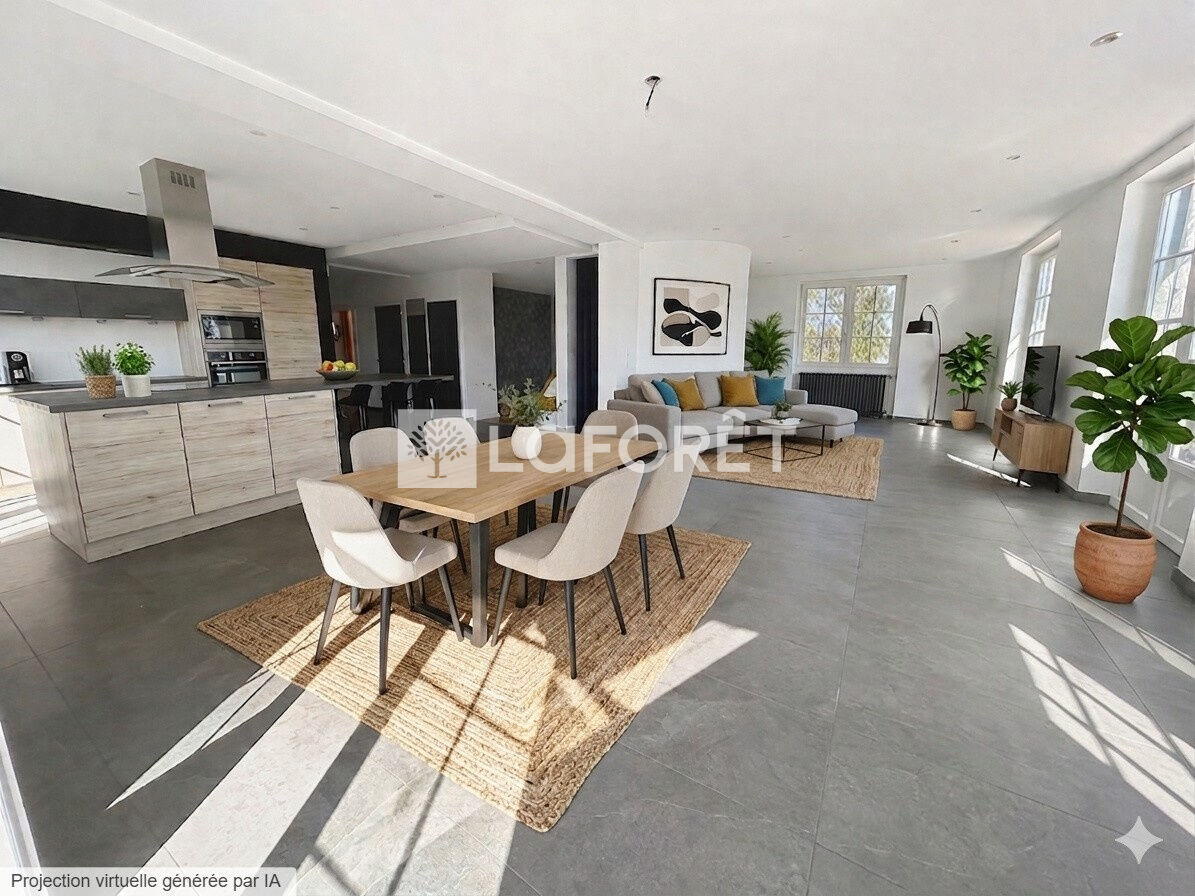 Vaste maison lumineuse de 10 pièces totalement rénovée offrant de grands volumes, 234 m² composée au rez de chaussée d'une entrée, deux chambres, salle de bains, cuisine équipée, salon séjour ouvrant sur une grande terrasse avec vue imprenable, plein sud.