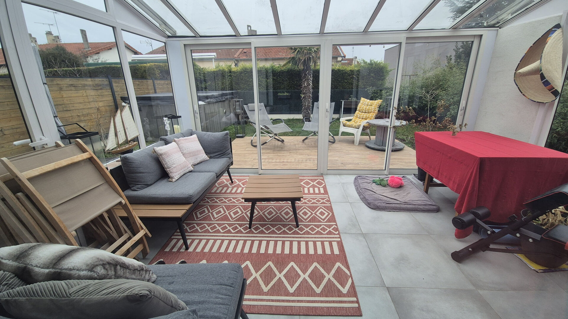 Vous profiterez également d'une véranda lumineuse, d'un jardin entièrement clôturé et d'un spa de nage pour des moments de détente toute l'année.
