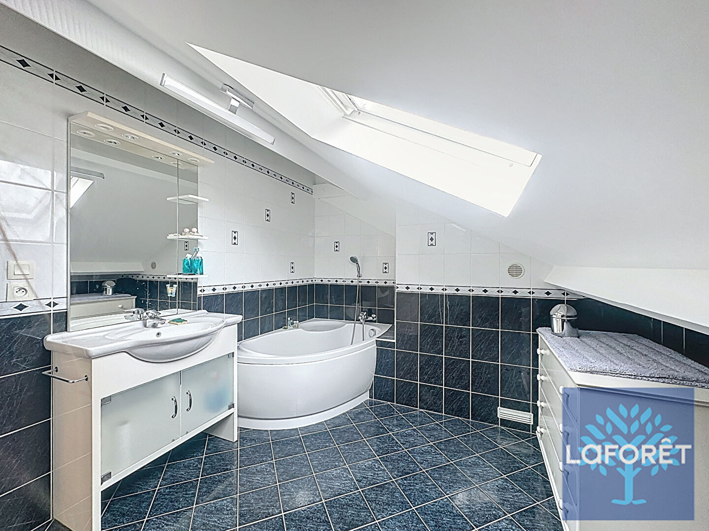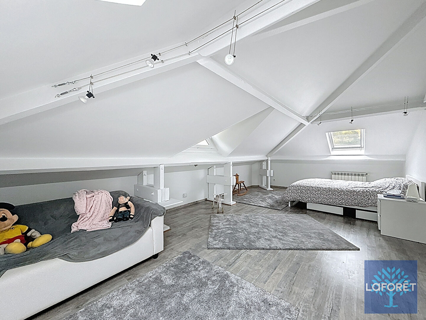 À l'étage, un palier lumineux dessert trois belles chambres mansardées, une salle de bains et des espaces de rangement optimisés.