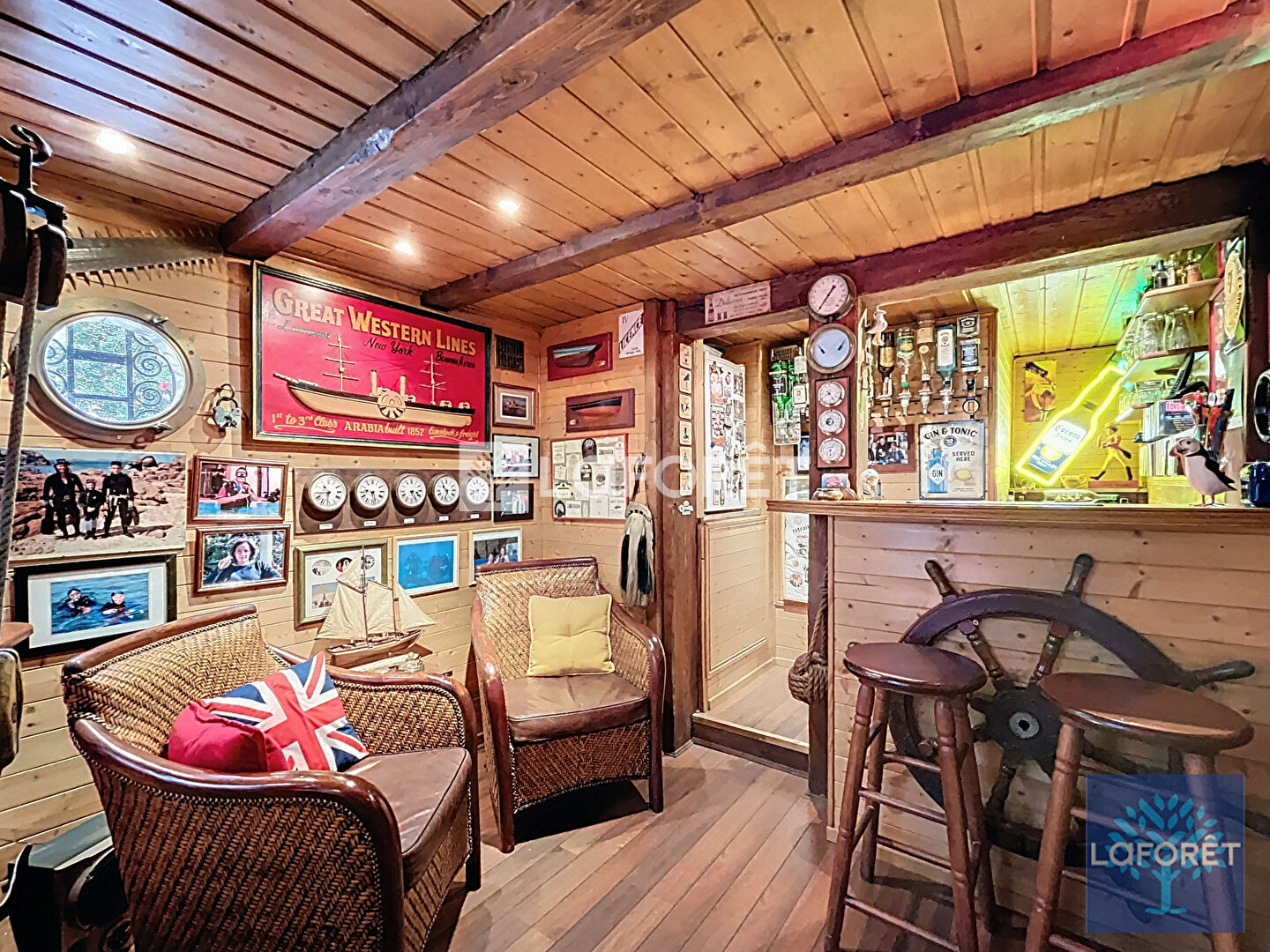 Laissez-vous surprendre par une pièce aménagée unique, actuellement utilisée comme bar / cabinet de curiosités, avec accès direct au reste du sous-sol. Stationnement possible pour un véhicule.