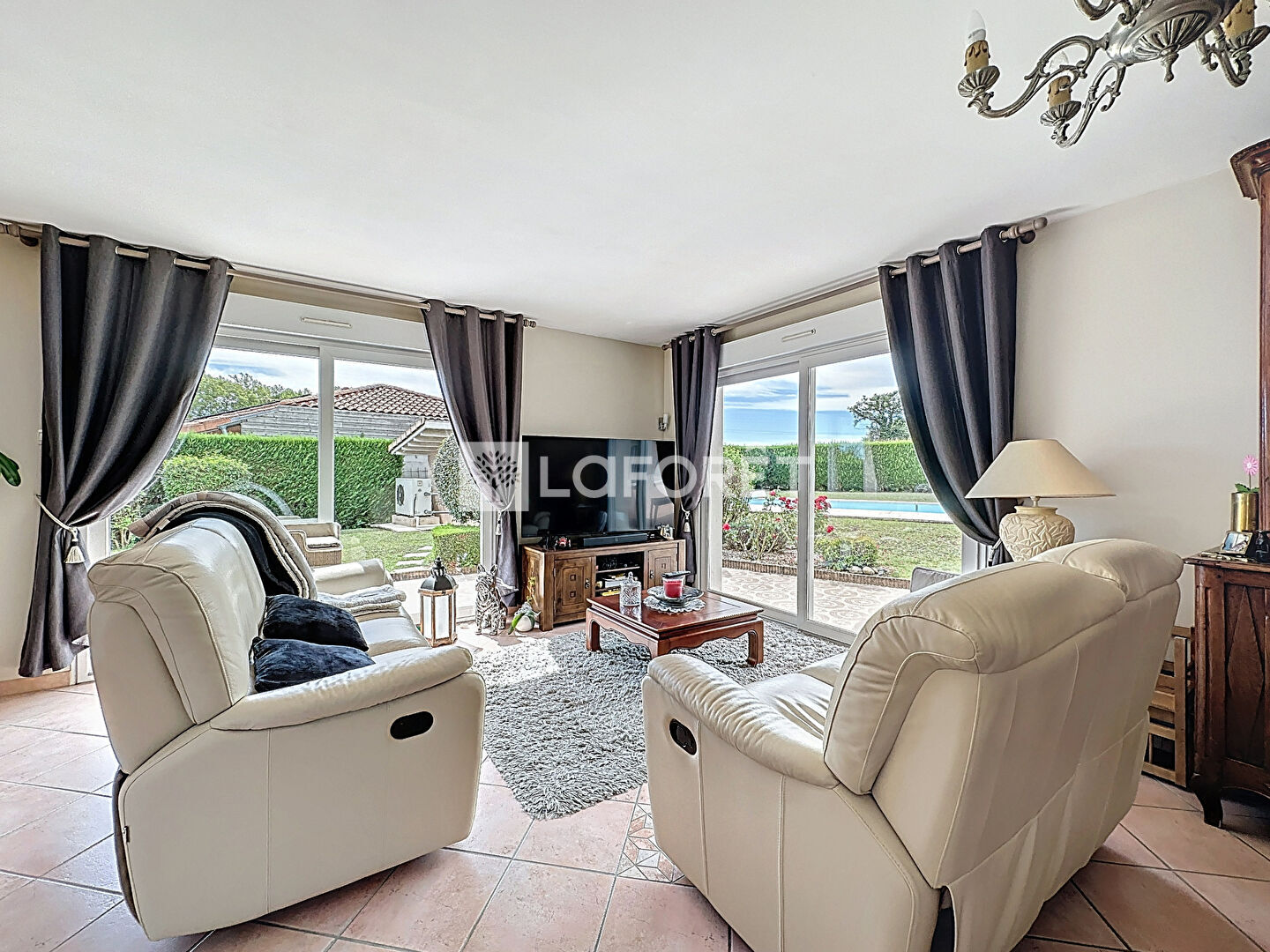 Dès l'entrée, vous serez charmés par un séjour baigné de lumière et une cuisine offrant une agréable vue sur la piscine, idéal pour partager de beaux moments.