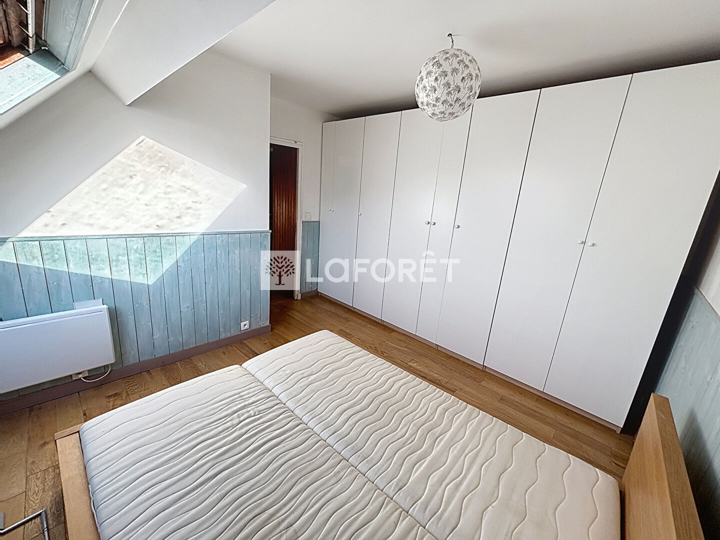La seconde maison de 2 pièces d'environ 50m² (60.57m² au sol) comprenant: entrée sur cuisine aménagée ouverte sur le séjour (accès terrasse et jardin), une salle d'eau avec W.C. A l'étage: grande chambre avec espace bureau / dressing. Portail extérieur électrique: 3 parkings.