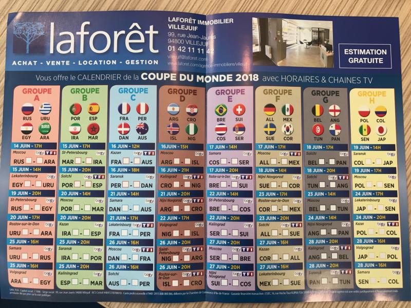 Alors pour cet évenement sportif, vous pourrez retrouver dans notre agence, ce petit guide avec les horaires et chaînes TV.