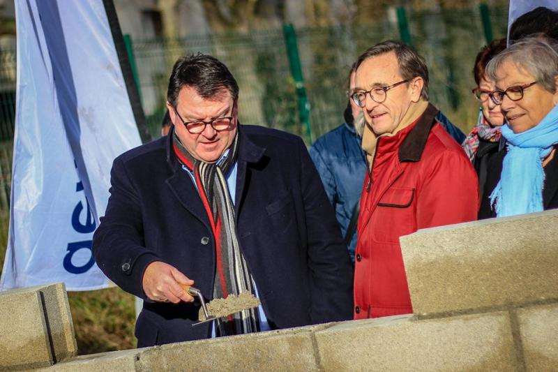 ✅ En ce mois de décembre, notre Maire Franck LE BOHELLEC a posé a première pierre pour le grand projet du hall des sports. Il se nommera Colette Besson,