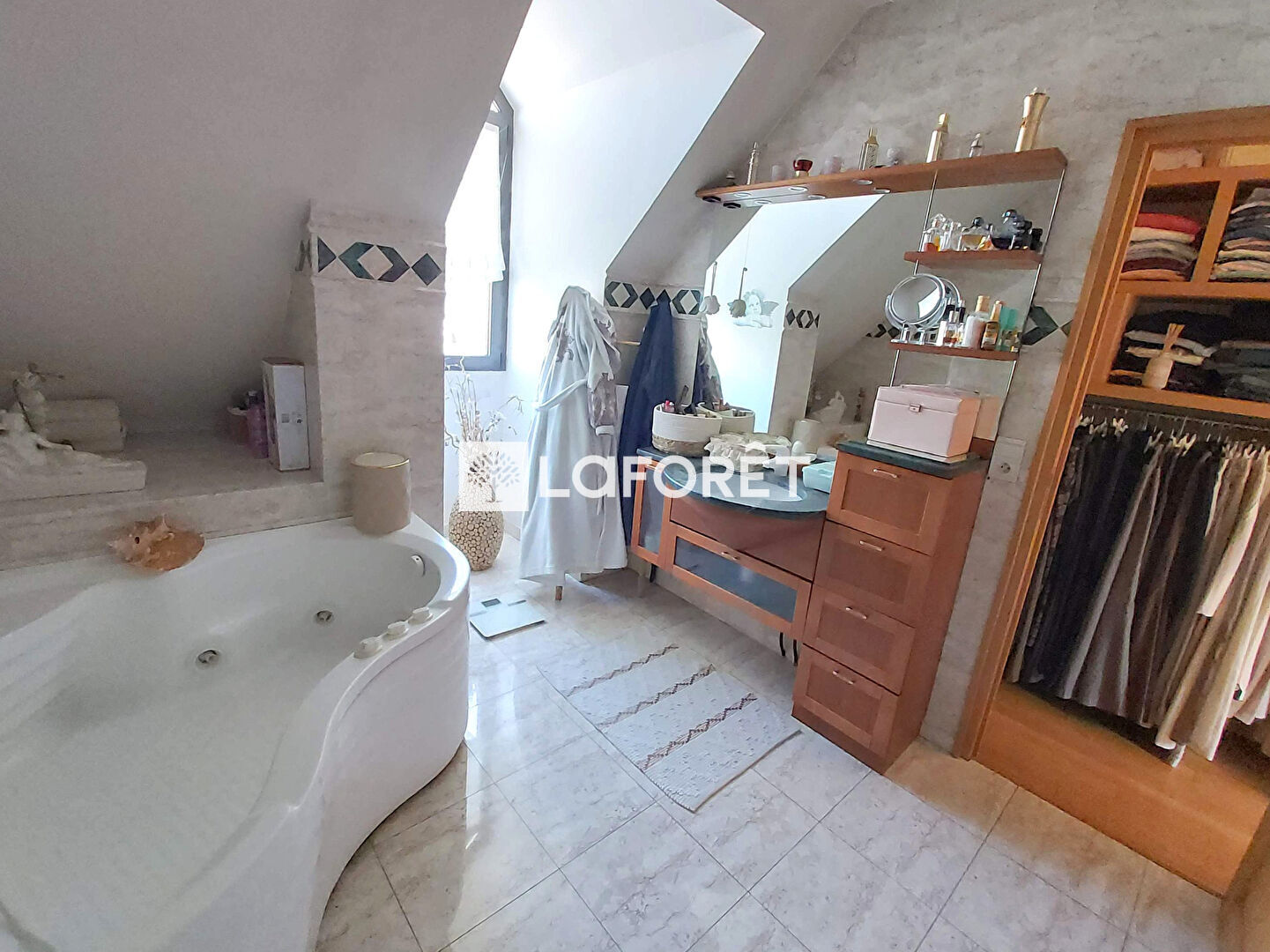 A l'étage, pièce palière en mezzanine (possibilité de faire la 5ème chambre), 2 chambres, SUITE PARENTALE avec dressing et salle de bains+wc, salle d'eau et wc.