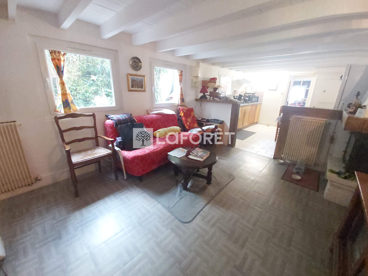 Maison en PLEINE PROPRIETE comprenant une entrée, séjour avec sa cuisine ouverte, VERANDA, wc, salle d'eau, chambre. A l'étage, grande chambre de 25 m² avec la possibilité d'une 3ème chambre. Combles aménagées.