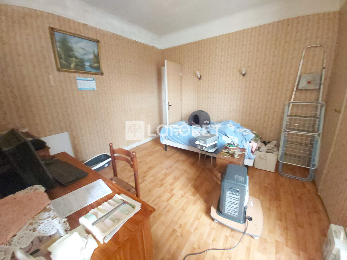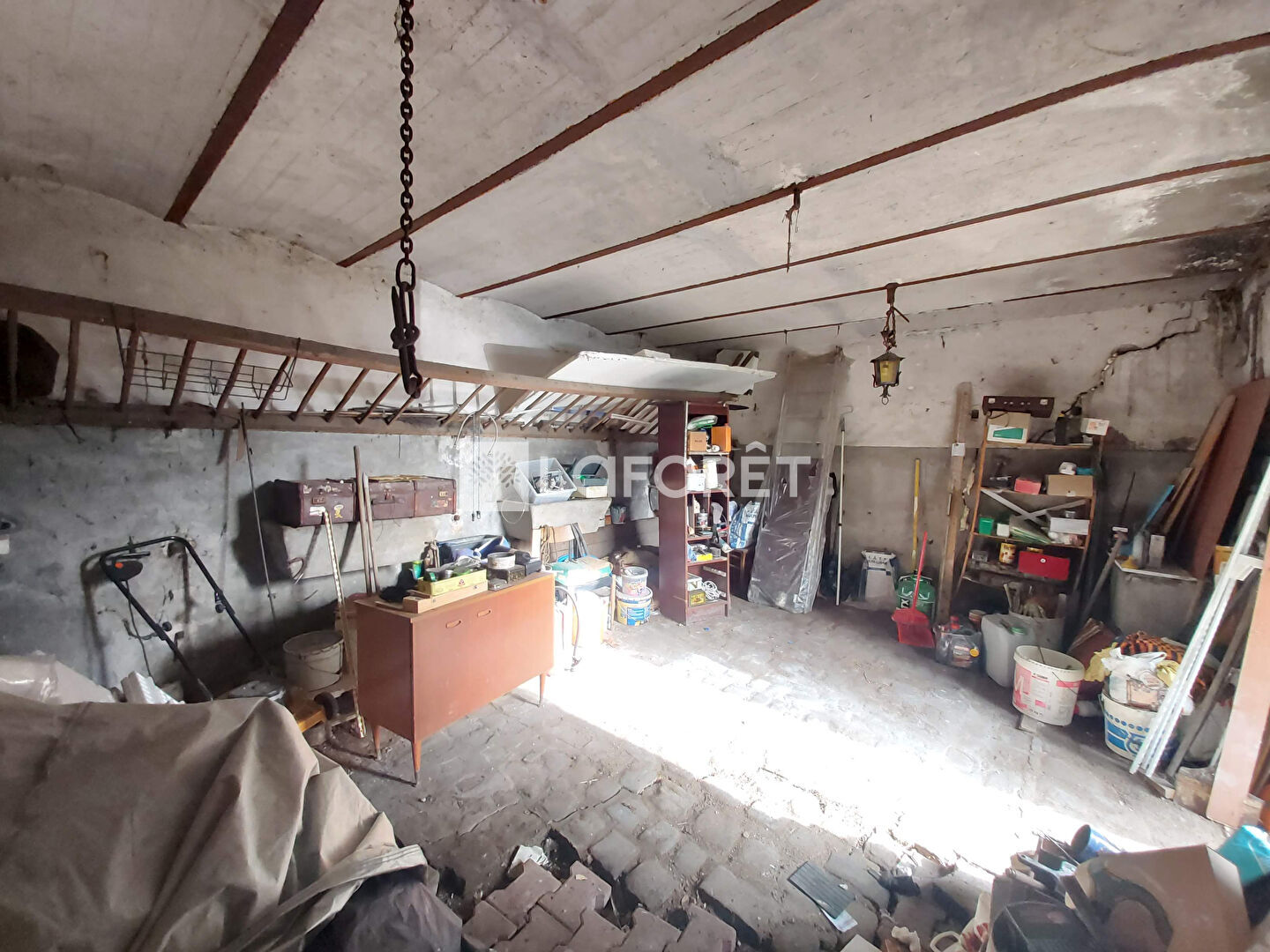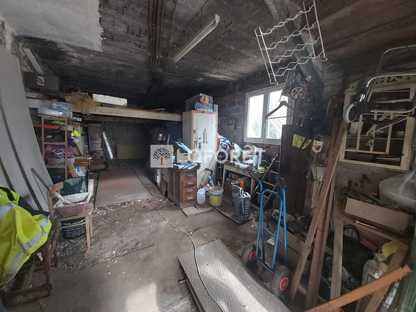 A droite, Atelier de 40m² en rez de chaussée. A l'étage, cuisine, séjour, chambre