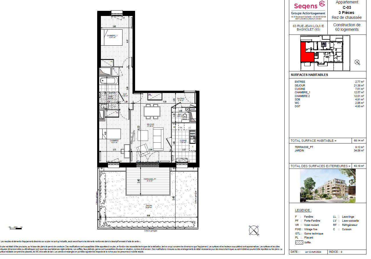68 m² • 3 pièces • 2 chambres