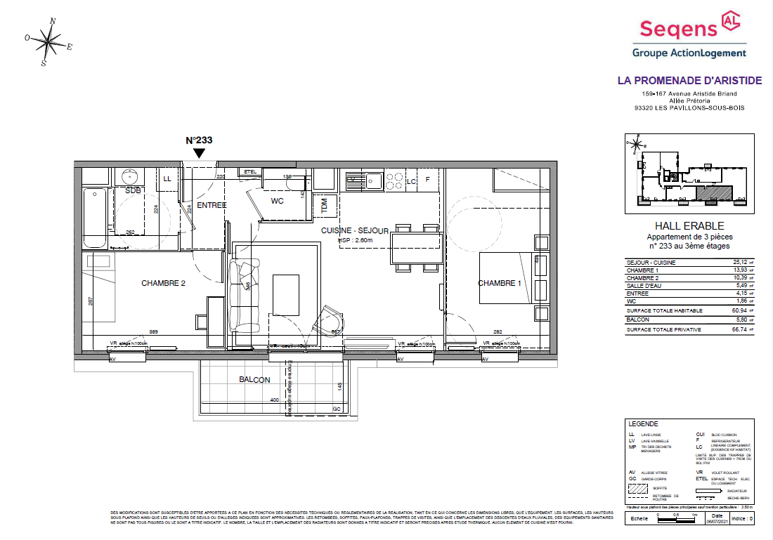 61 m² • 3 pièces • 2 chambres
