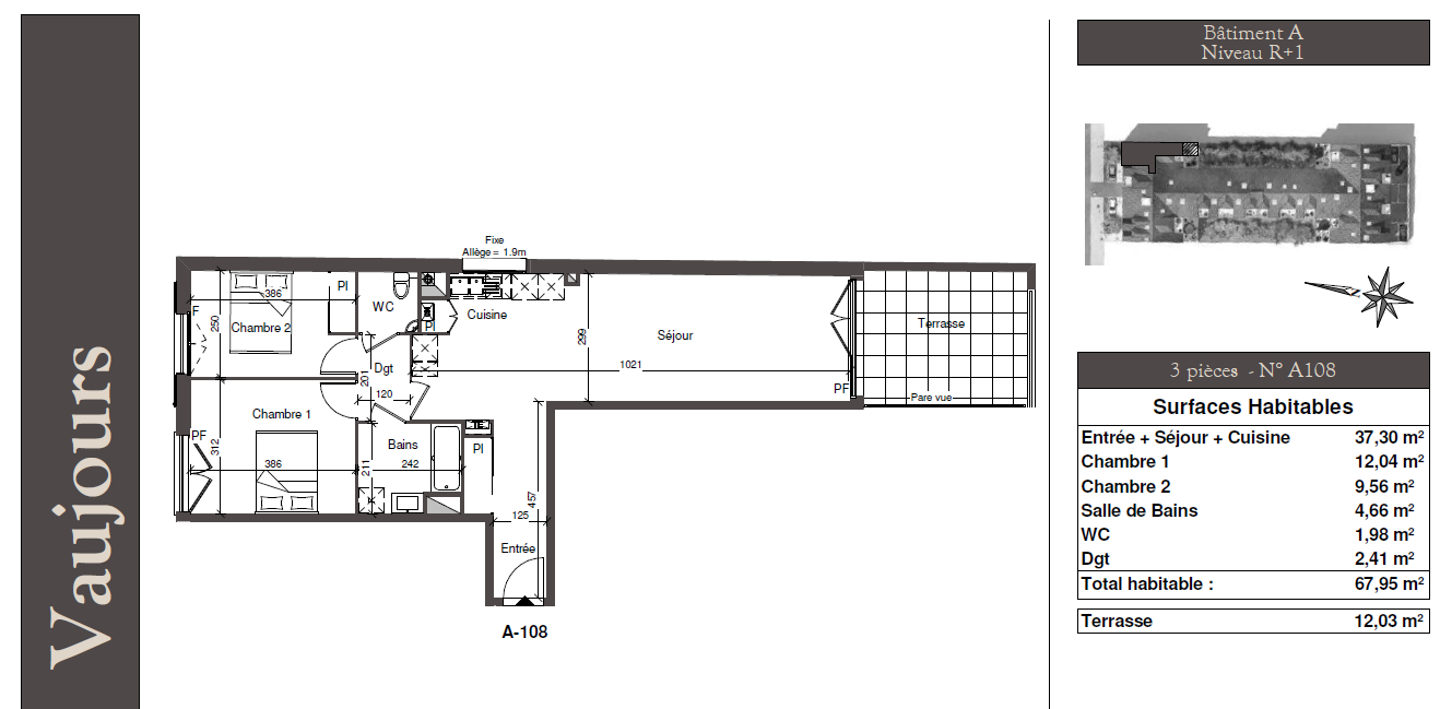 cet agréable appartement 3 pièces se compose d'une entrée, d'un séjour avec cuisine ouverte, de deux chambres, d'une salle de bains, d'un WC, ainsi que d'un dégagement. Vous pourrez également profiter d'une terrasse.