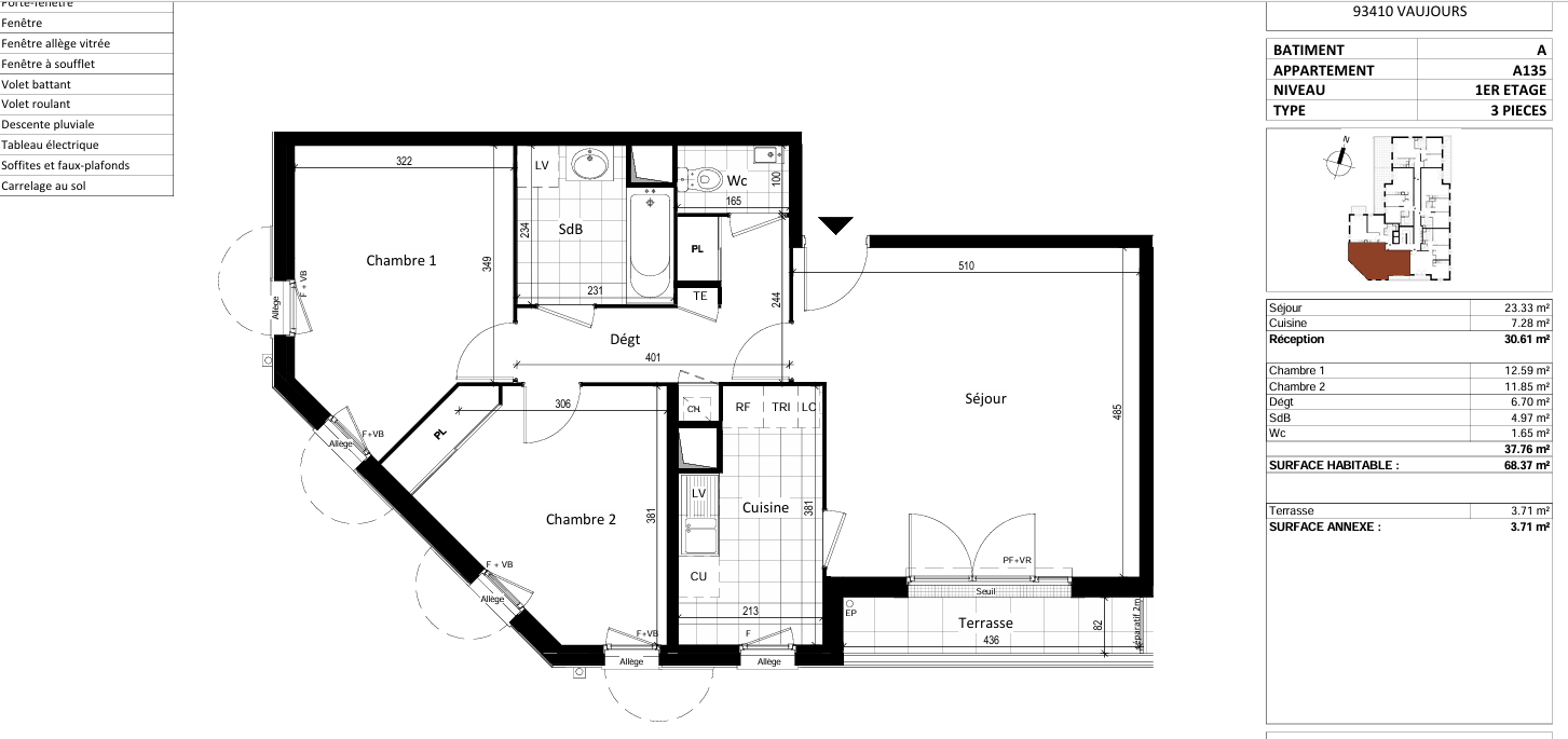 68 m² • 3 pièces • 2 chambres