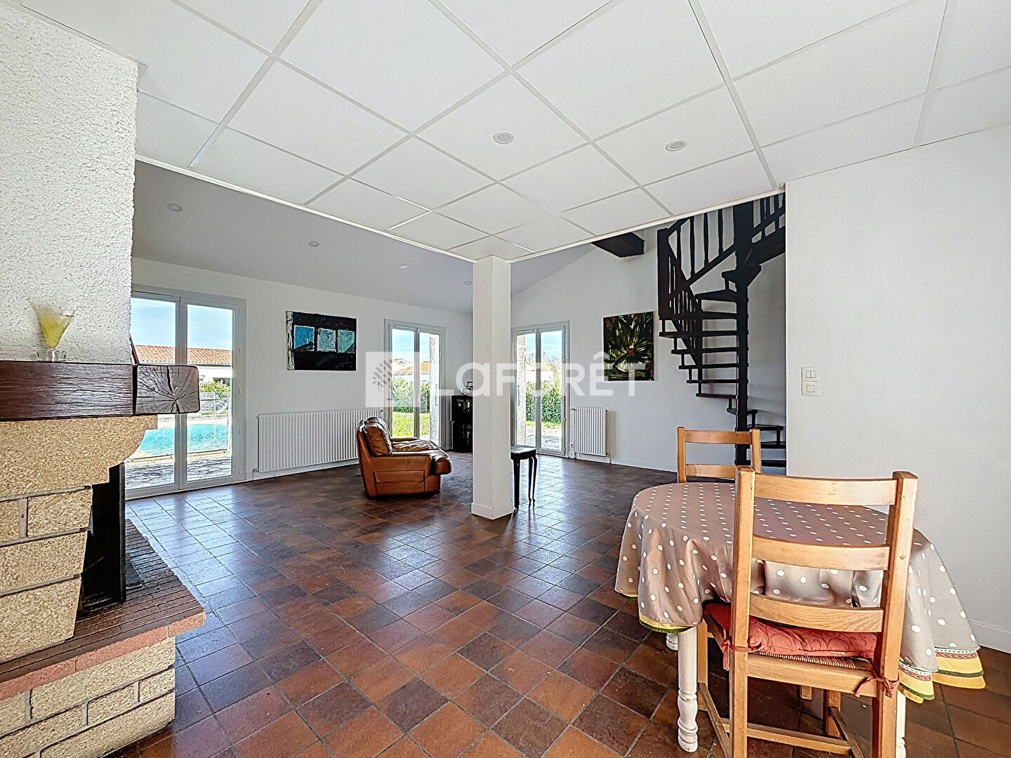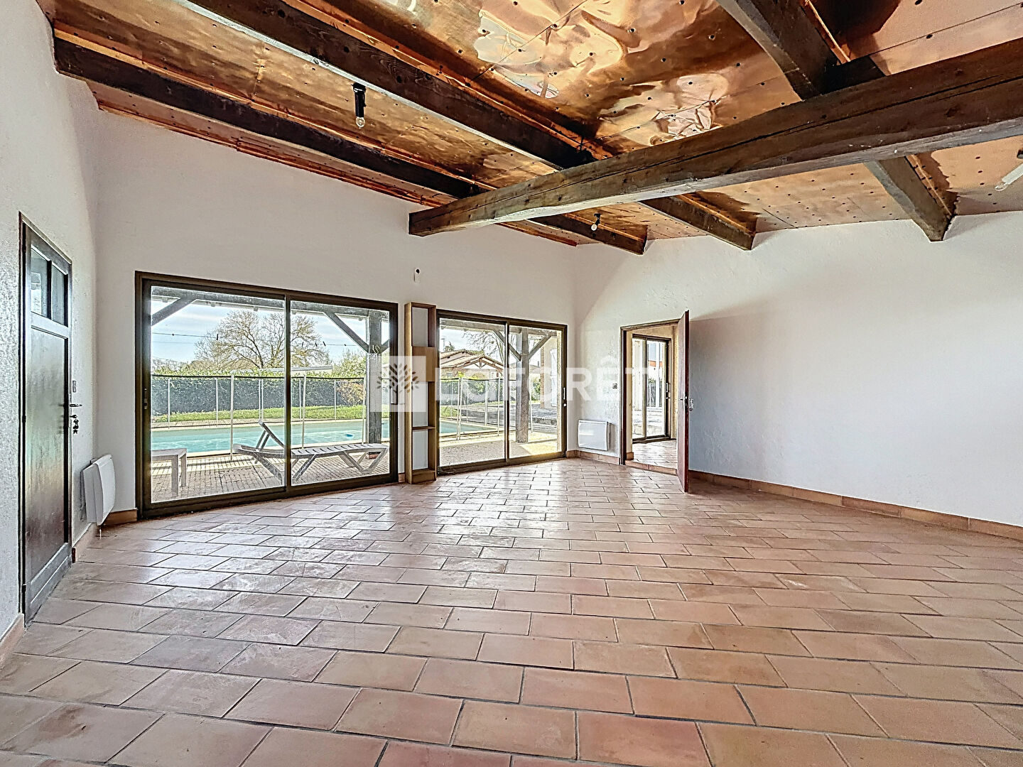 Elle dispose également de 4 chambres, dont une grande chambre d'environ 32 m² avec accès direct sur la piscine.