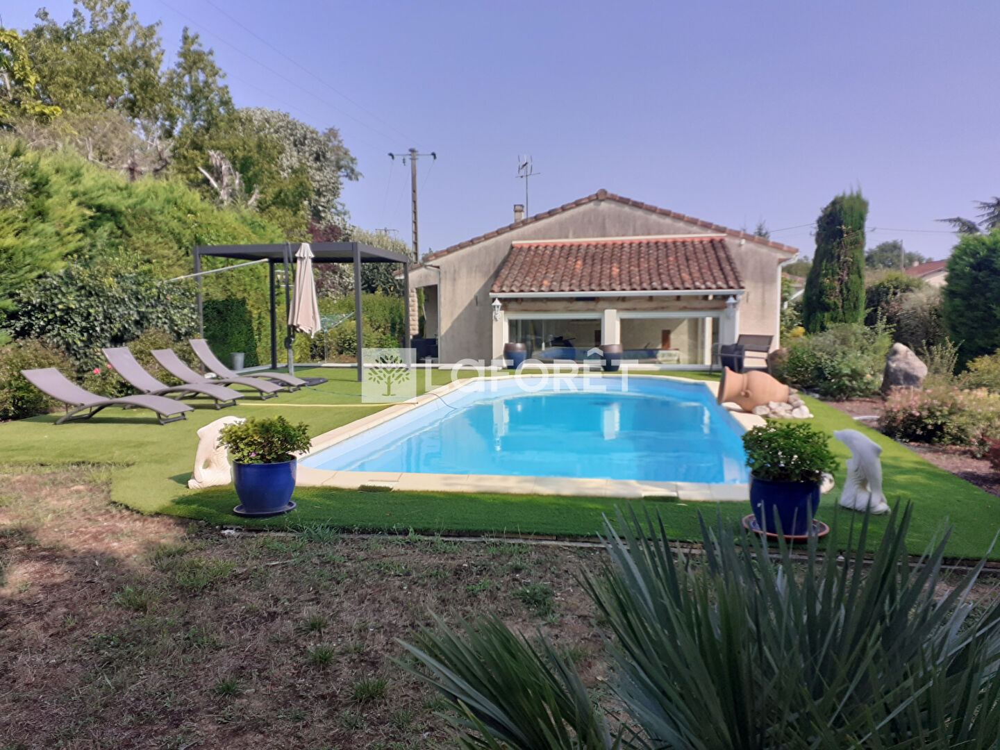 À l'extérieur, vous profiterez d'un superbe terrain de 2 324 m², accueillant un espace piscine sans vis-à-vis, soigneusement aménagé, ainsi qu'une pergola idéale pour les moments de détente.