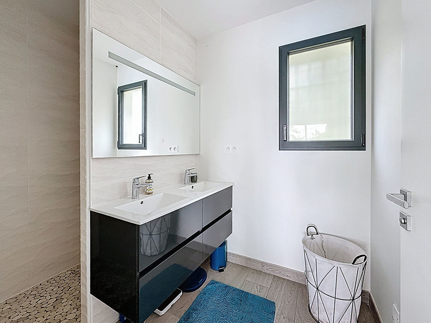 Magnifique villa de 178 m², construite en 2020, nichée au coeur d'un environnement calme et boisé, idéalement située entre les bourgs de Latresne et de Carignan et à 15 minutes de Bordeaux et de la Gare Saint Jean.