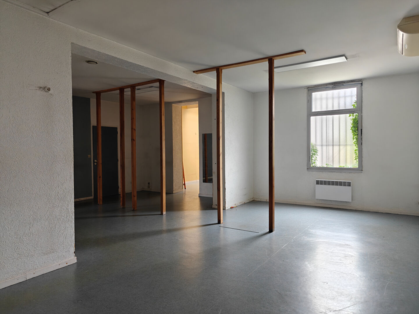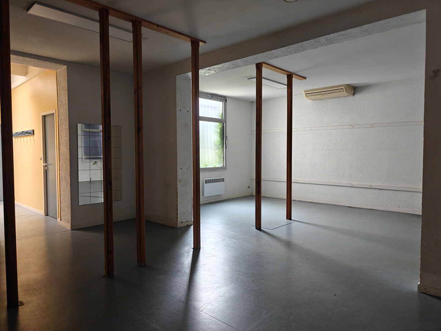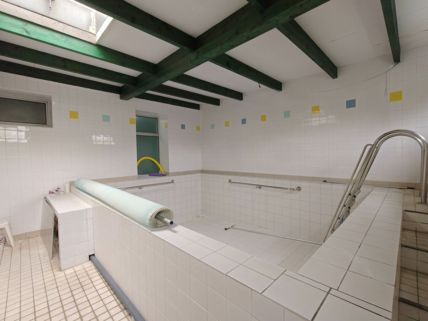 Composé d'un accueil, 3 bureaux fermés, une grande salle d'environ 54m², un W.C indépendant, un ensemble de douche/vestiaire, une piscine et un local piscine sont à disposition.