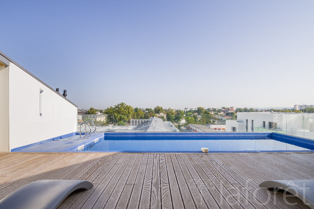 Service de gardiennage, piscine en roof-top et salle de fitness à disposition des résidents.