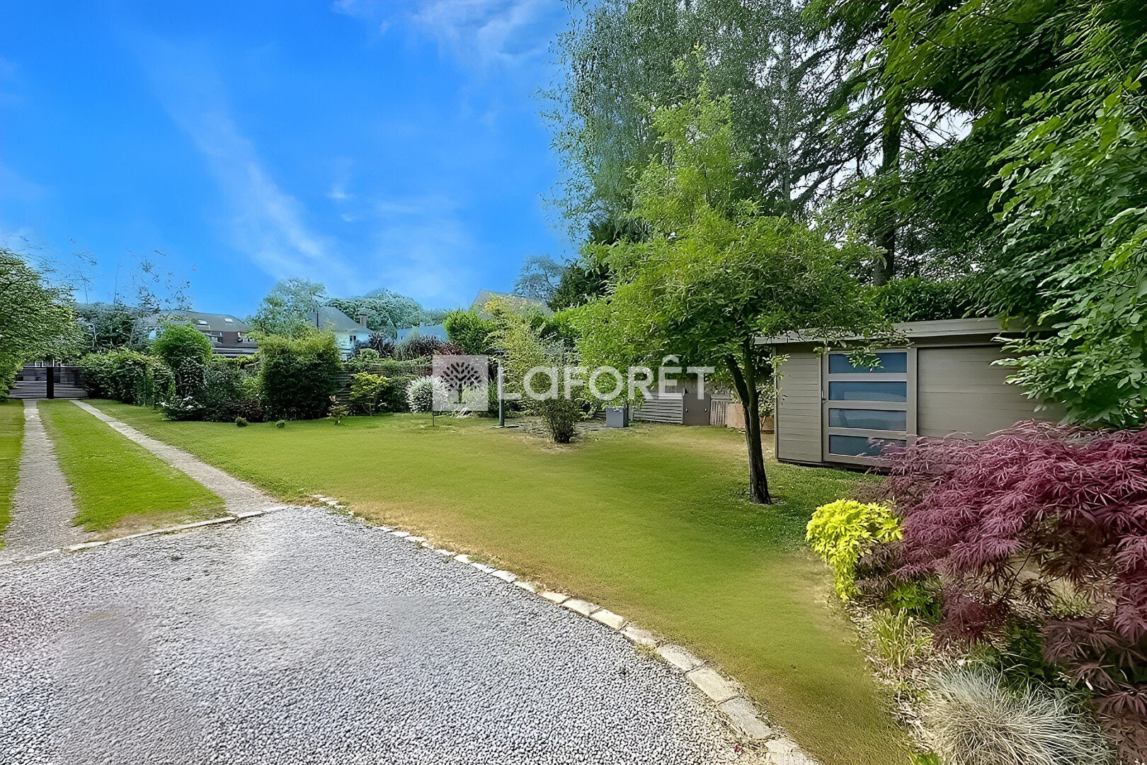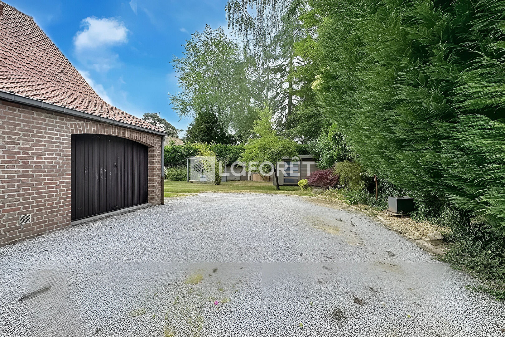 Les prestations annexes viennent renforcer le confort de cette maison : cave en sous-sol de 22 m², garage, stationnements extérieurs, portail, abri de jardin, et surtout un jardin clos, paysagé et intime, propice à la détente comme aux jeux en famille.