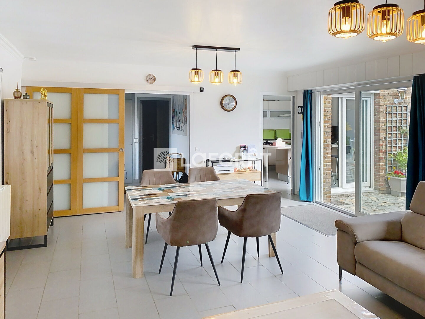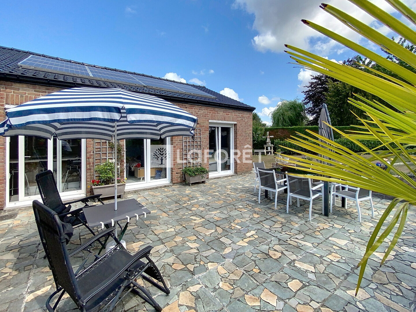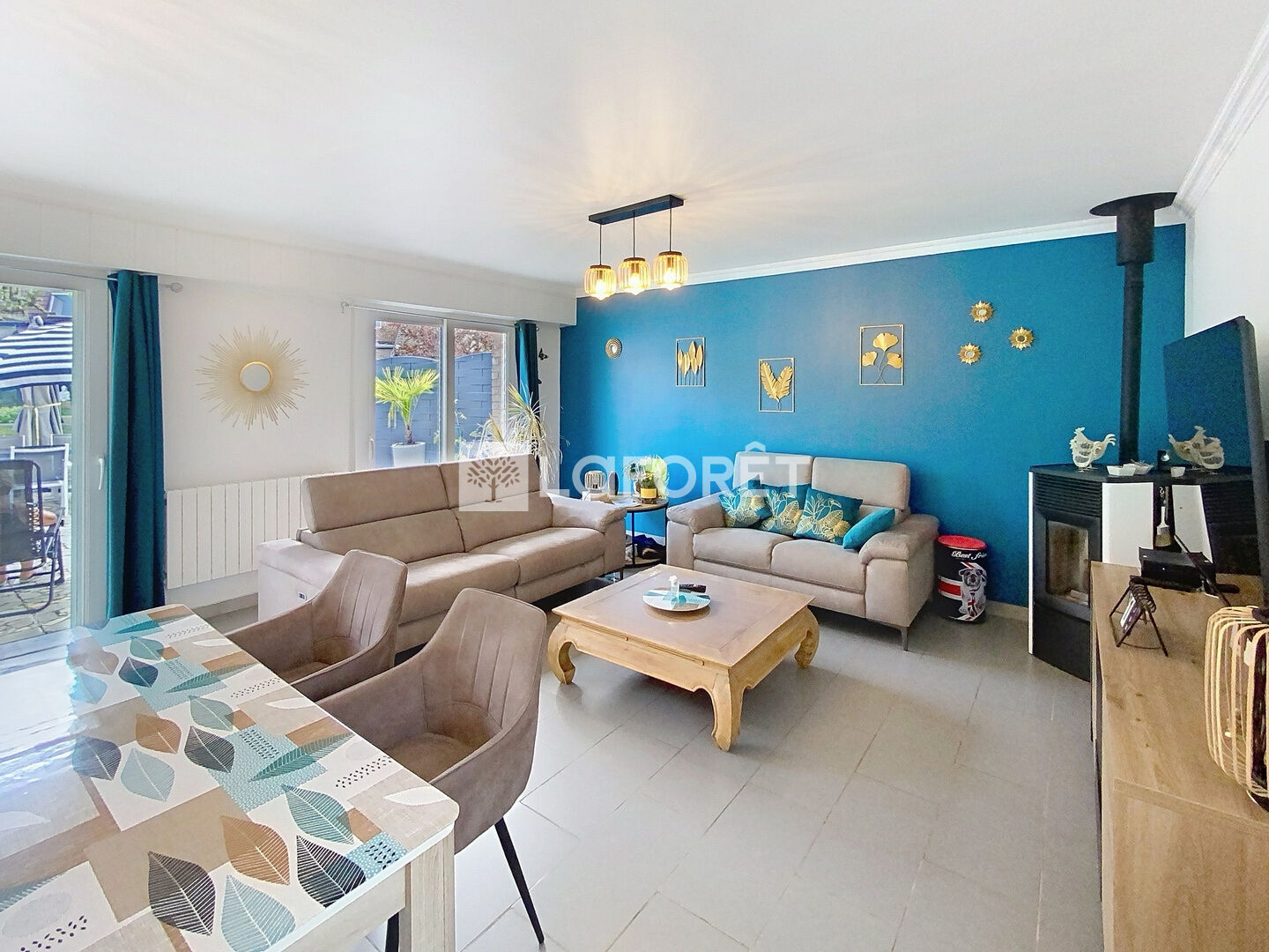 Dès l'entrée, vous serez accueilli par un hall desservant un vaste salon-séjour chaleureux, agrémenté d'un poêle à granulés, avec accès direct à une terrasse ensoleillée et à un beau jardin exposé plein sud, idéal pour profiter des beaux jours en toute tranquillité.