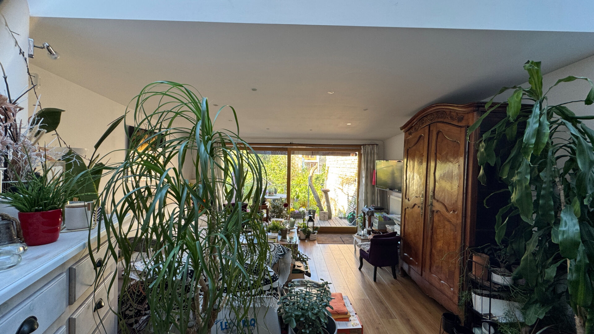 Une terrasse supplémentaire en contrebas dans un jardin de 30 m² exposé plein sud, sans vis-à-vis, pour profiter pleinement des beaux jours, au calme absolu.