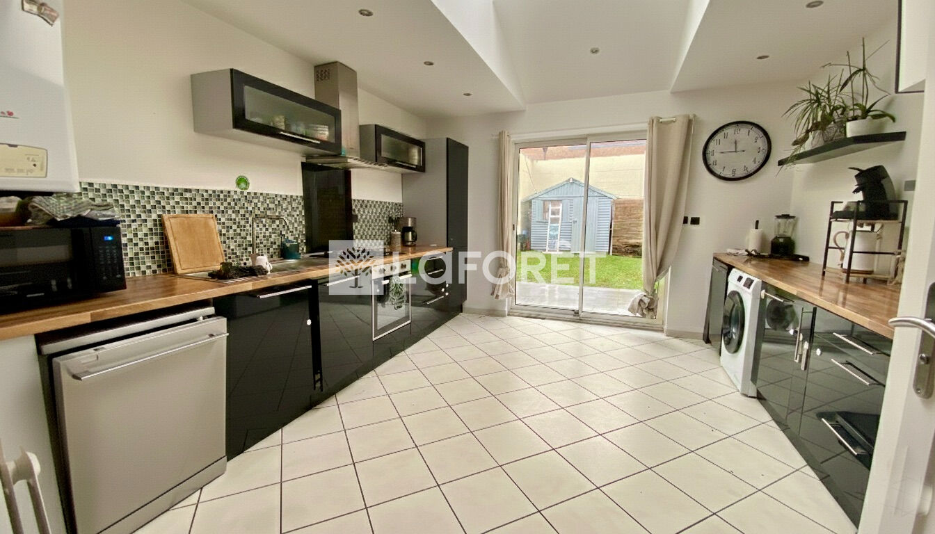 Développant environ 90 m² habitables, la maison s'ouvre au rez-de-chaussée sur un bel espace de vie chaleureux comprenant un salon-séjour spacieux, ouvert sur une cuisine aménagée et équipée, pensée pour le quotidien comme pour les moments de convivialité. Un WC séparé complète ce niveau. L'ensemble donne accès à un agréable jardin d'environ 50 m², exposé sud-est, idéal pour profiter des beaux jours, avec un cabanon permettant le rangement du mobilier de jardin.