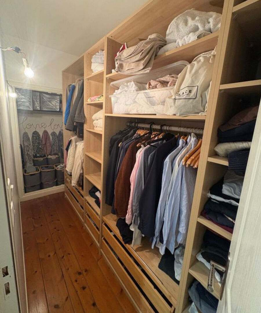 À l'étage, l'espace nuit propose trois chambres confortables, une très belle salle de bains équipée d'une baignoire et d'une douche, ainsi qu'un dressing fonctionnel. Les combles ont été intelligemment aménagés en bureau, offrant une pièce supplémentaire parfaitement adaptée au télétravail ou à un usage polyvalent. Les volumes sont généreux et optimisés avec soin.