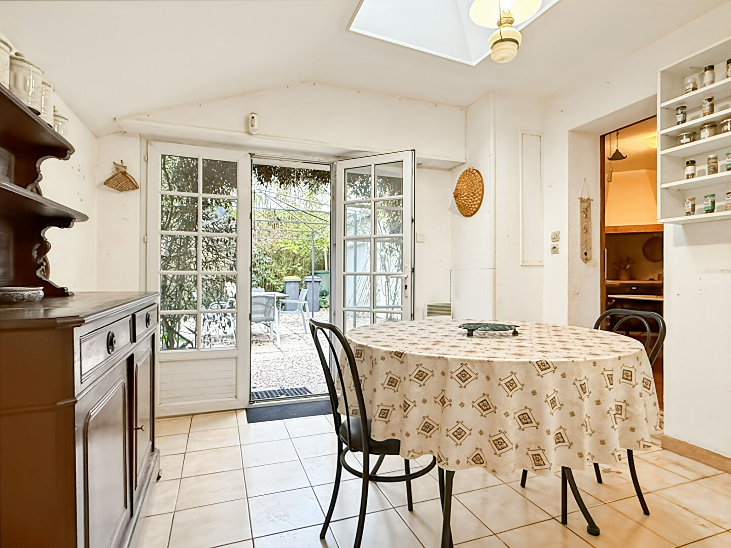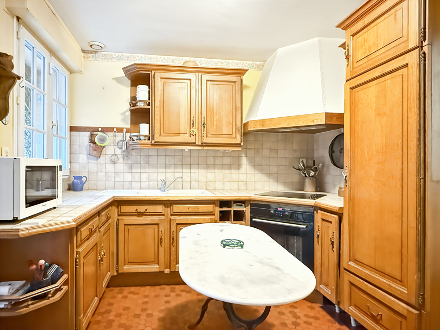 Elle offre une cuisine aménagée et équipée, un coin repas, 3 chambres, 2 salles d'eau et un wc. Vous pourrez profiter de l'extérieur sous la pergola cet été. Le bureau donne accès à des combles aménagés pour stockage ou dortoir enfants occasionnel.