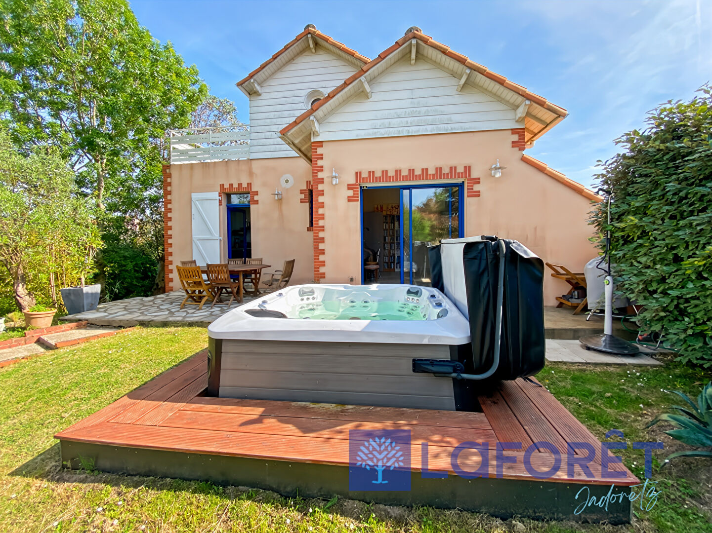 Détendez vous dans le jacuzzi ou sur la terrasse avec vue sur le jardin paysagé de près de 800 m², sans vis-à-vis, offrant une intimité totale. Cadre paisible, tout en étant à proximité de toutes les commodités et à 500 m de la plage!