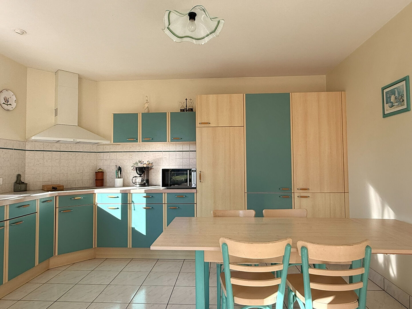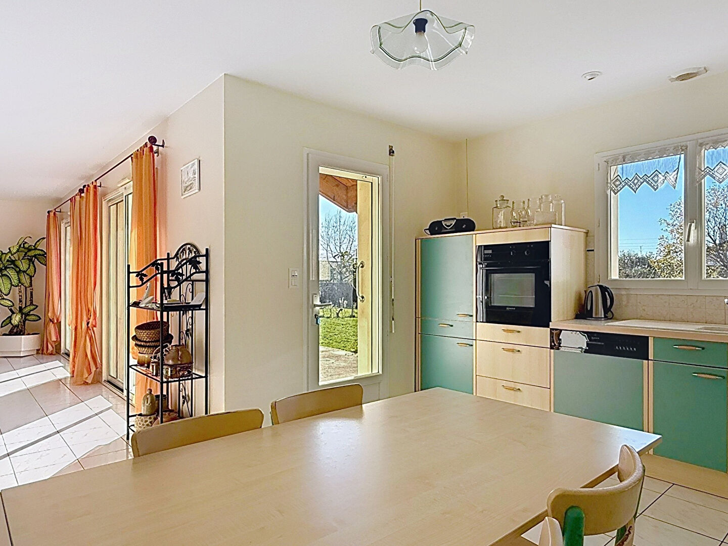 A découvrir cette maison de 2000 avec chauffage au sol par GEOTHERMIE, proposant une vaste entrée avec placard et wc, un ESPACE DE VIE DE 60 m² ouvert sur un grand jardin avec terrasse orientée sud-ouest (store-bannes). La cuisine est aménagée et équipée, et complétée d'un cellier de 10 m² lui-même prolongé par un GARAGE de 33 m² et un grenier de 60 m².