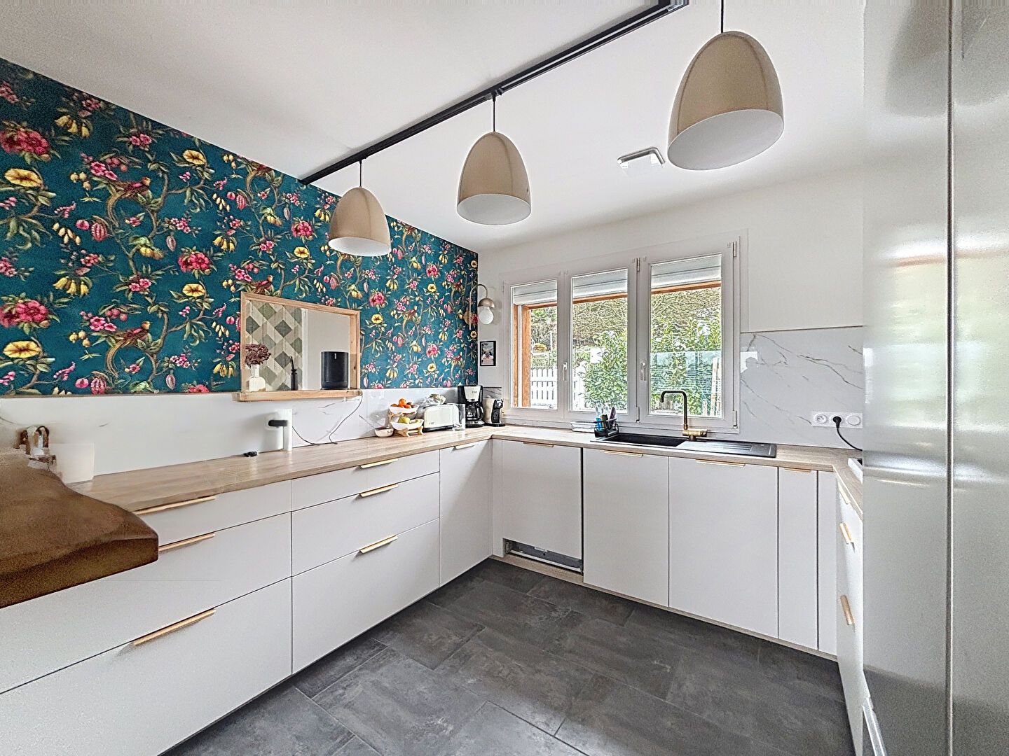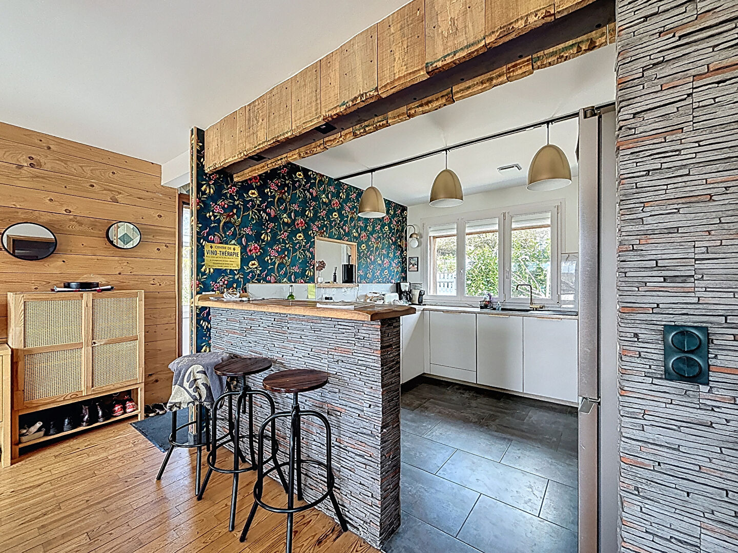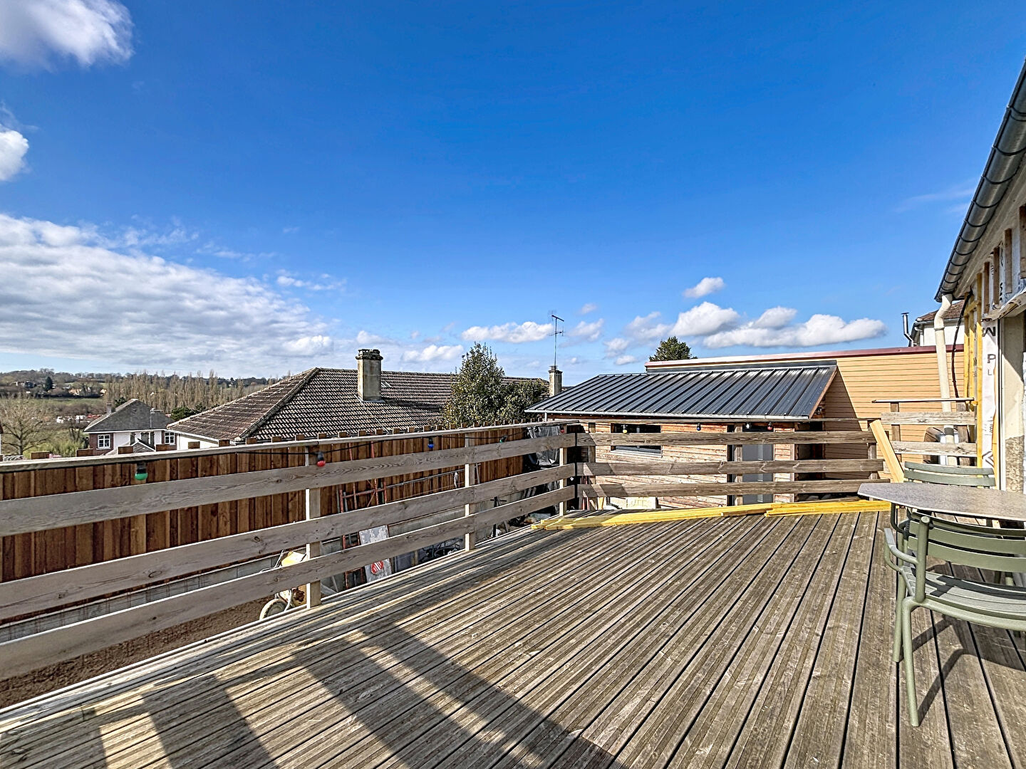 Une maison proche de Lisieux offrant une superbe cuisine aménagée , salle séjour donnant sur une belle terrasse de 25 m2 , deux chambres , salle de bain , wc .