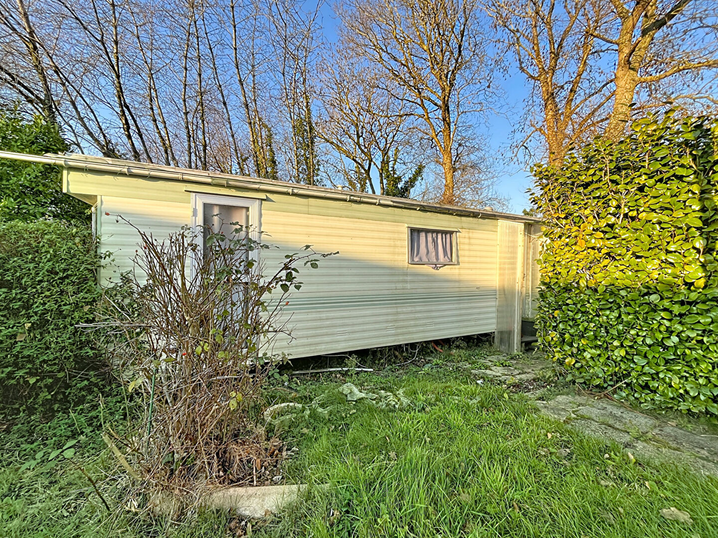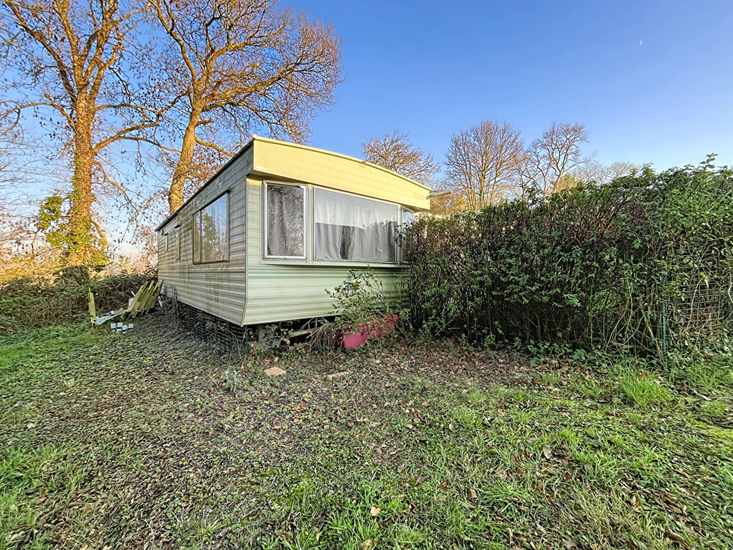 Mobil-home nécessitant une rénovation ou un remplacement.