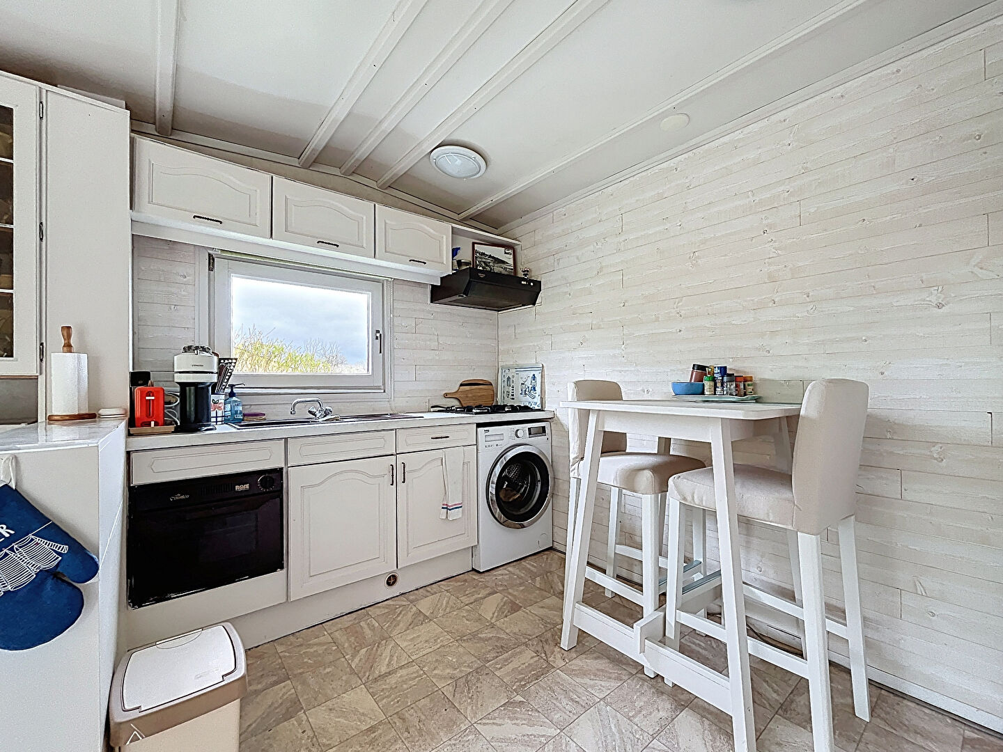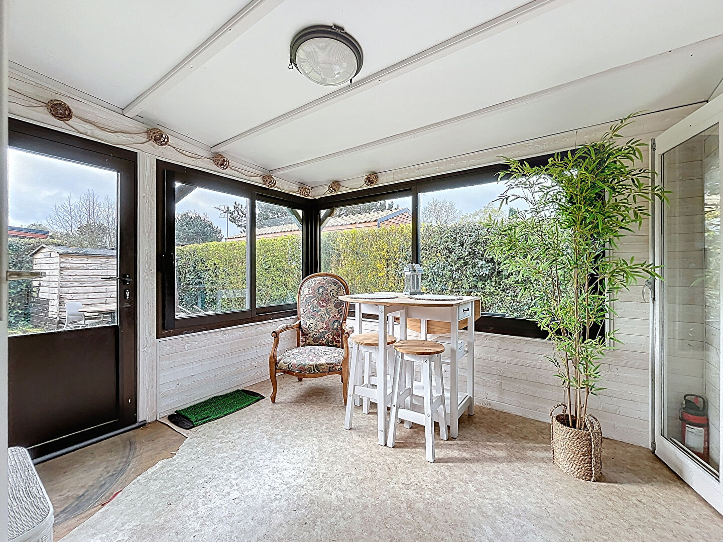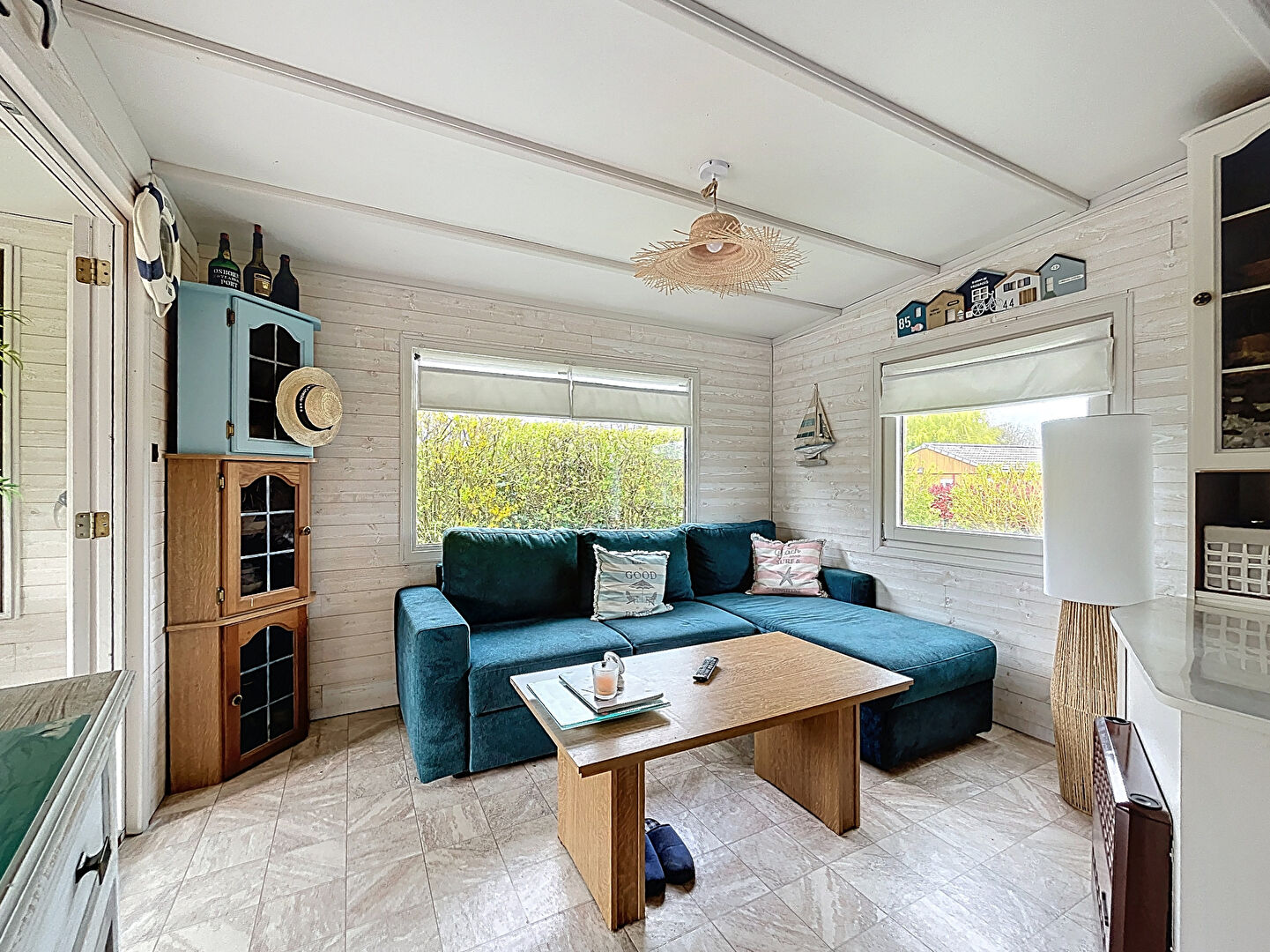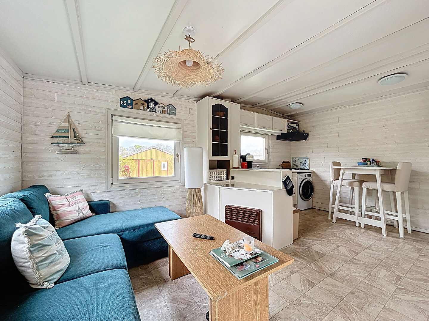 Il se compose d'une pièce de vie lumineuse avec cuisine équipée et aménagée, une véranda, deux chambres, une salle de douche, WC séparé, ainsi qu'un couloir et une buanderie.