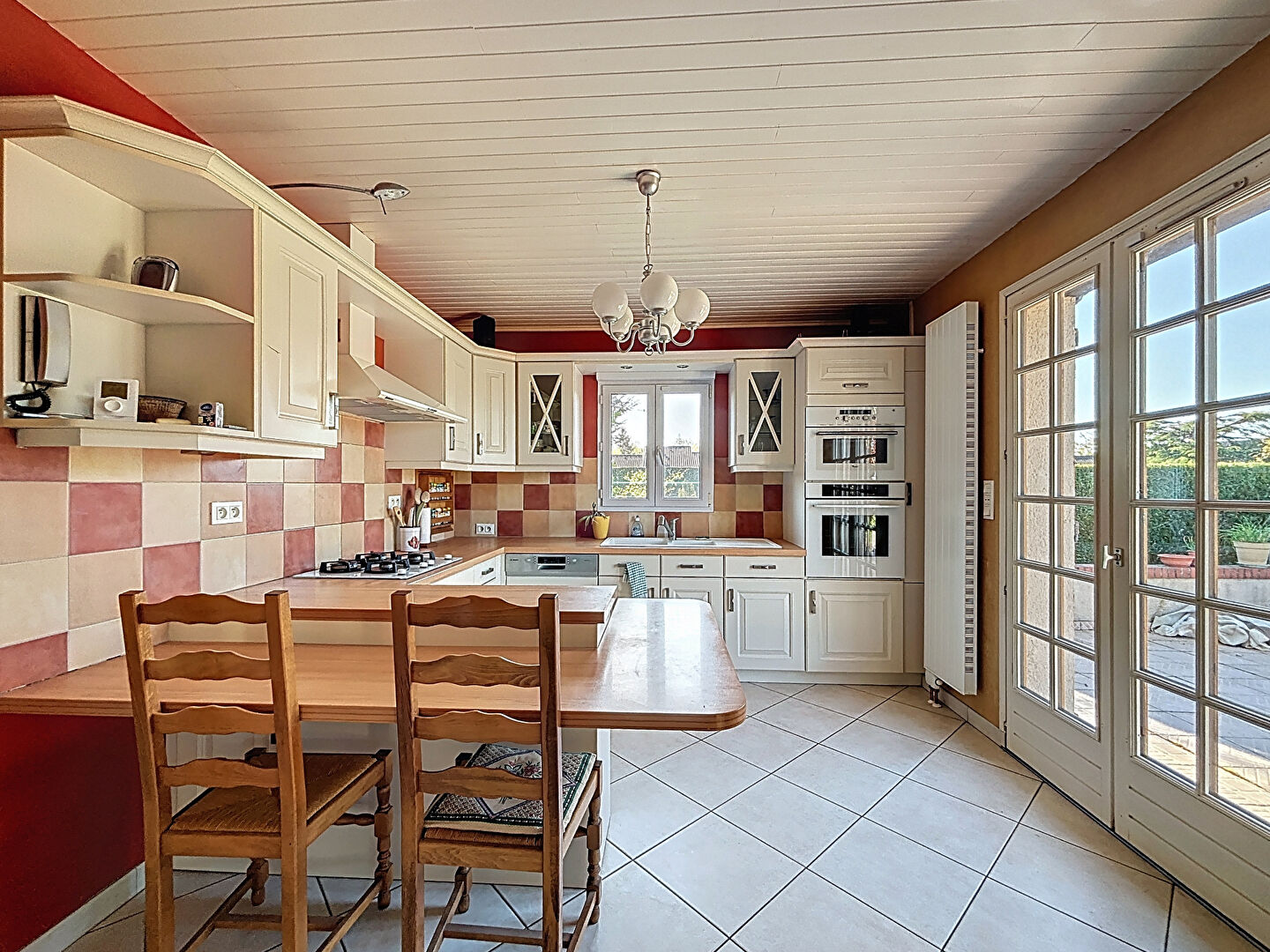 Cette charmante maison de 133 m2 se composant : Au rez de chaussée une entrée desservant une salle /salon en L de 38 m2 équipée d'un insert . Une cuisine équipée donnant sur la terrasse. Une chambre. Une douche avec wc .