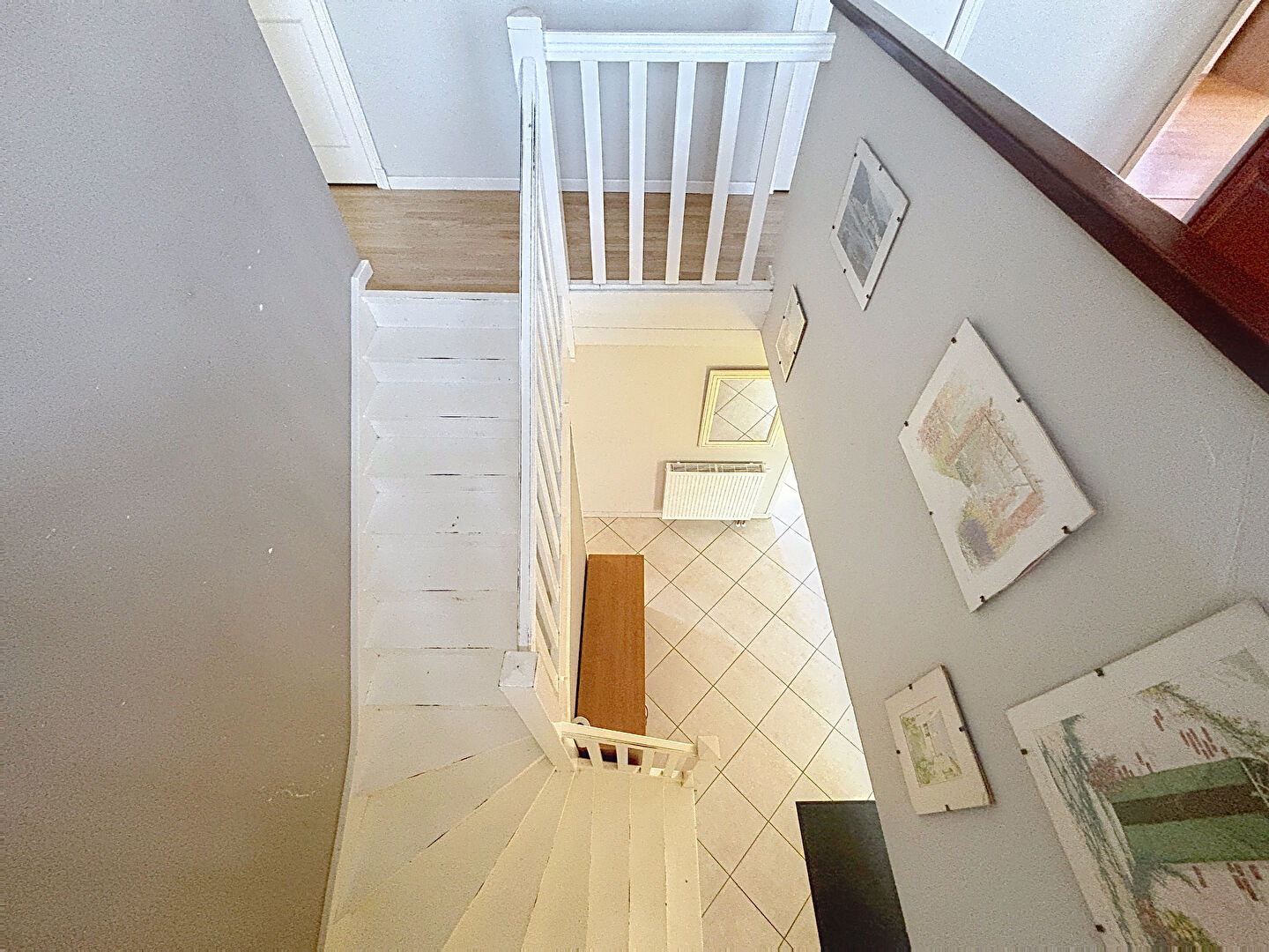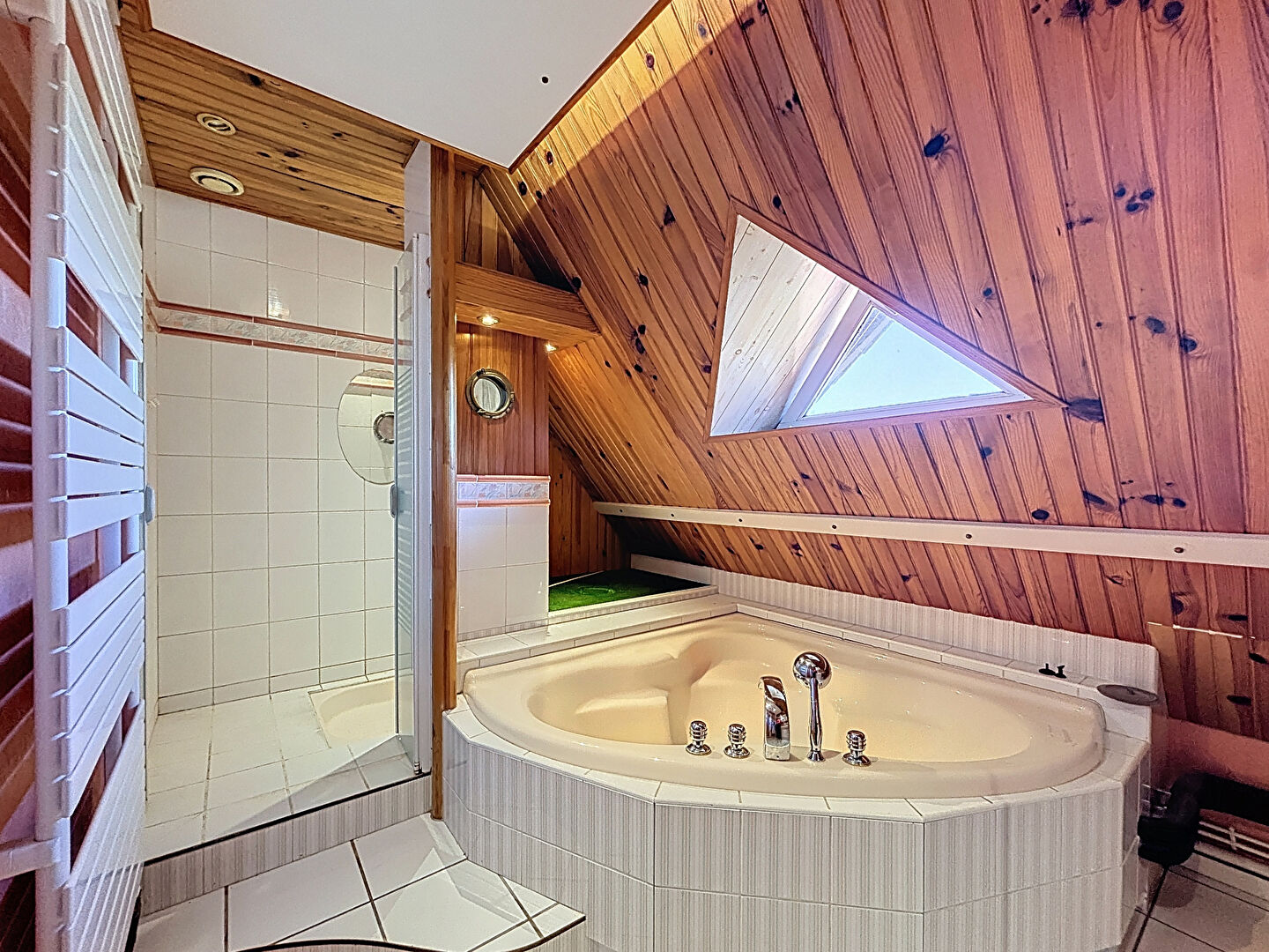 A l'étage : un palier pouvant accueillir un bureau , 4 chambres dont une avec balcon , salle d'eau douche et baignoire balnéo , wc .