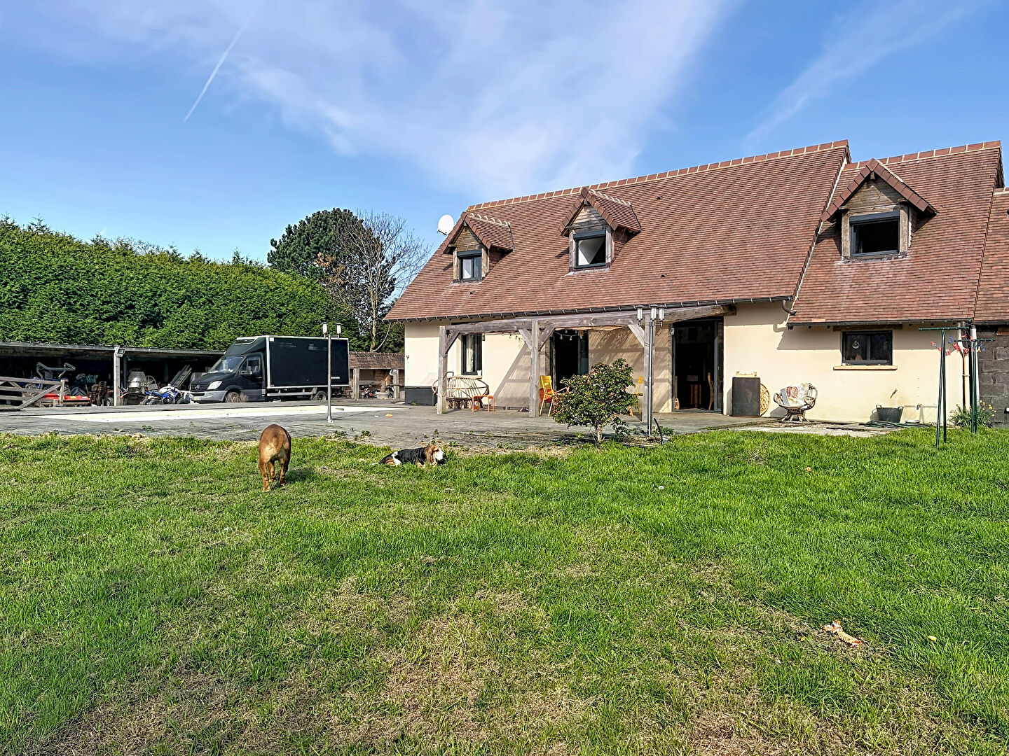 LAFORET VILLERS SUR MER vous propose à 5 minutes en voiture des commerces et des plages de VILLERS SUR MER et d'HOULGATE une maison avec de magnifiques volumes comprenant une entrée, un grand séjour salon avec cuisine ouverte, équipée et aménagée de près de 100m², un bureau et une salle de douche avec wc, une suite parentale avec salle d'eau. A l'étage, un grand palier desservant une chambre et une suite parentale avec sa salle de bains et un wc. . Plusieurs dépendances. Terrasse avec piscine chauffée. L'ensemble sur 5810 m² de terrain avec permis accordé pour une construction de 120m²