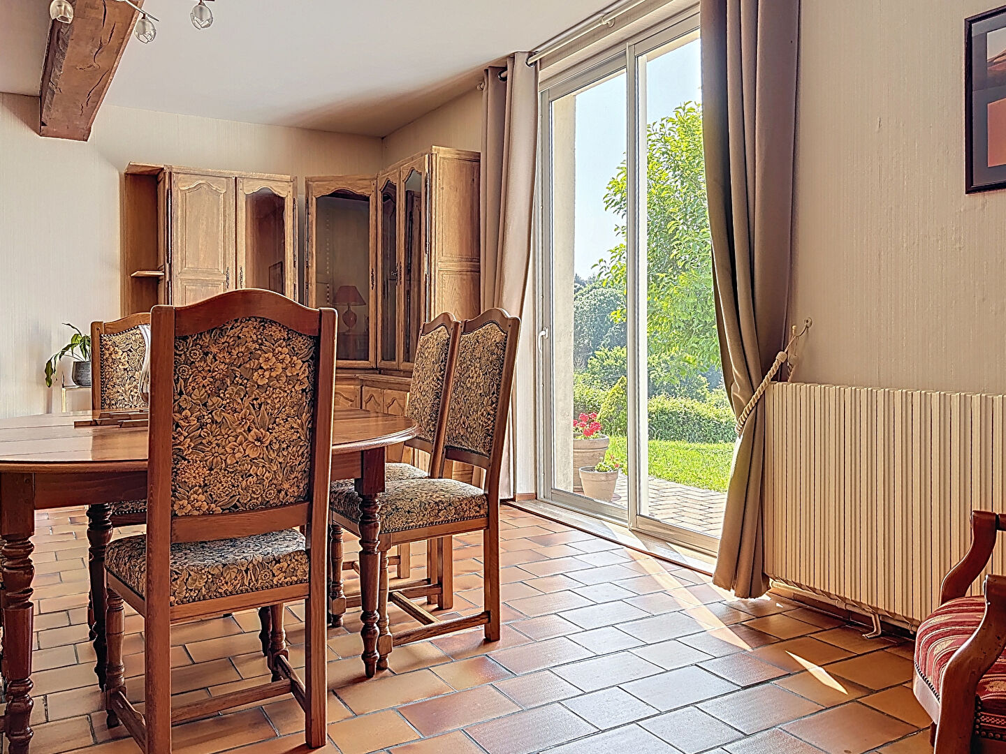 au rez de chaussée un salon avec cheminée , un cuisine , salle à manger de 27 m2 , salle d'eau wc et une buanderie .
