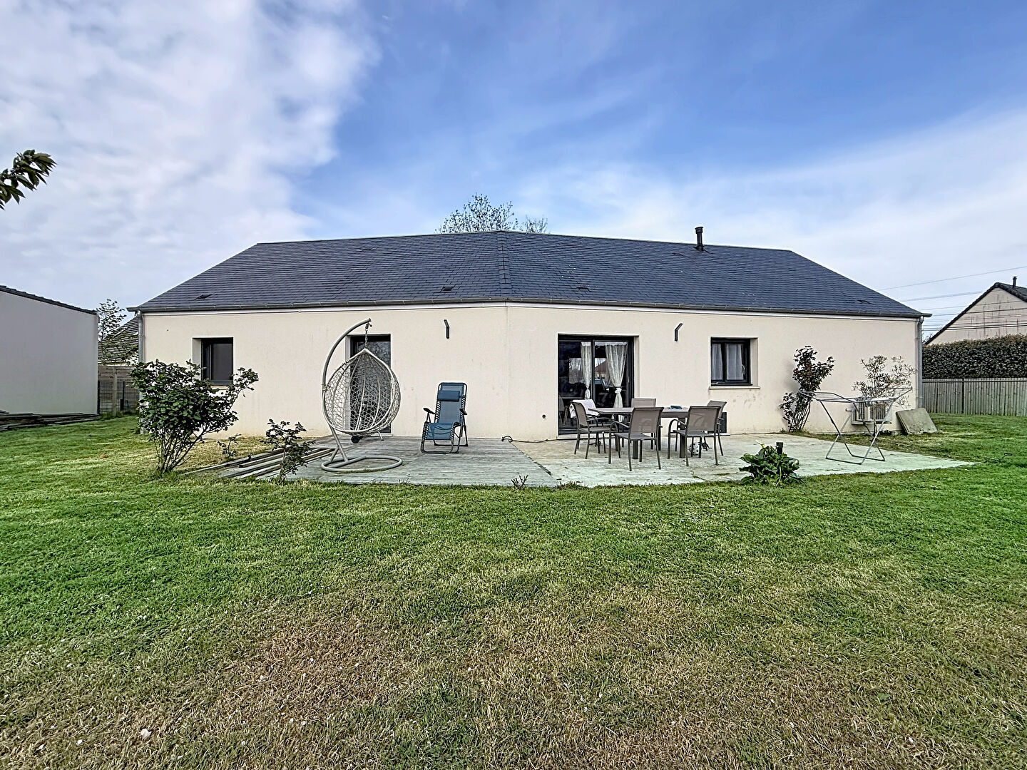 Laforêt Villers sur Mer vous propose : à 5km de la plage une maison de plain-pied de 2022 (RT 2012) comprenant un double séjour avec cuisine ouverte aménagée et équipée ouvrant sur une terrasse exposée plein Ouest, un couloir distribuant 3 chambres dont une suite parentale avec salle d'eau, une salle de bains et un WC séparé, un grand garage avec espace buanderie.