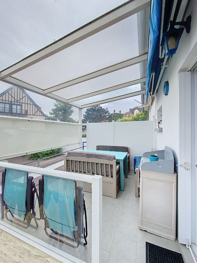 À l'arrière de la maison, une terrasse couverte, une place de stationnement privative et un chalet indépendant, isolé et aménagé avec coin cuisine, coin nuit , salle d'eau et WC.